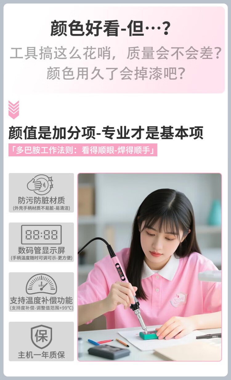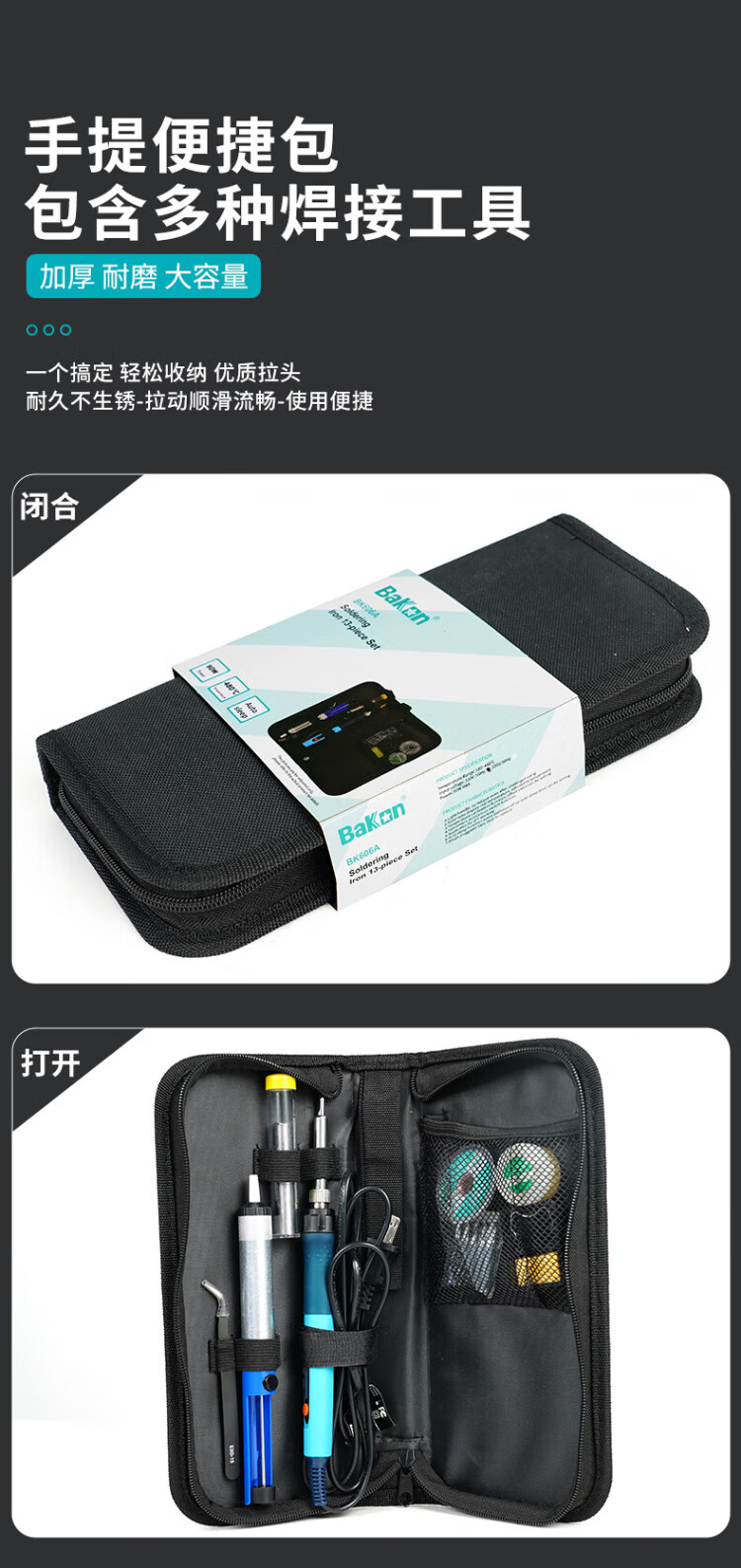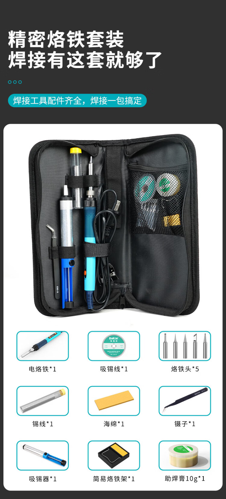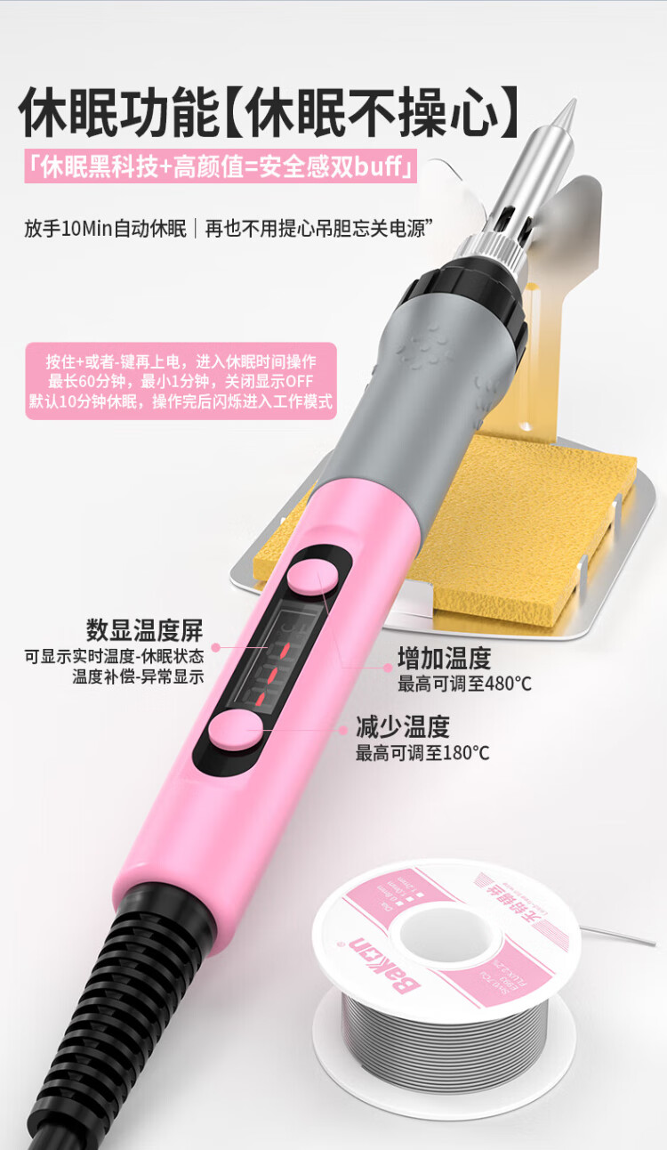 Bakon white light household electric soldering iron set for beginners 90W adjustable temperature digital display constant temperature soldering iron BK606A nine-piece set