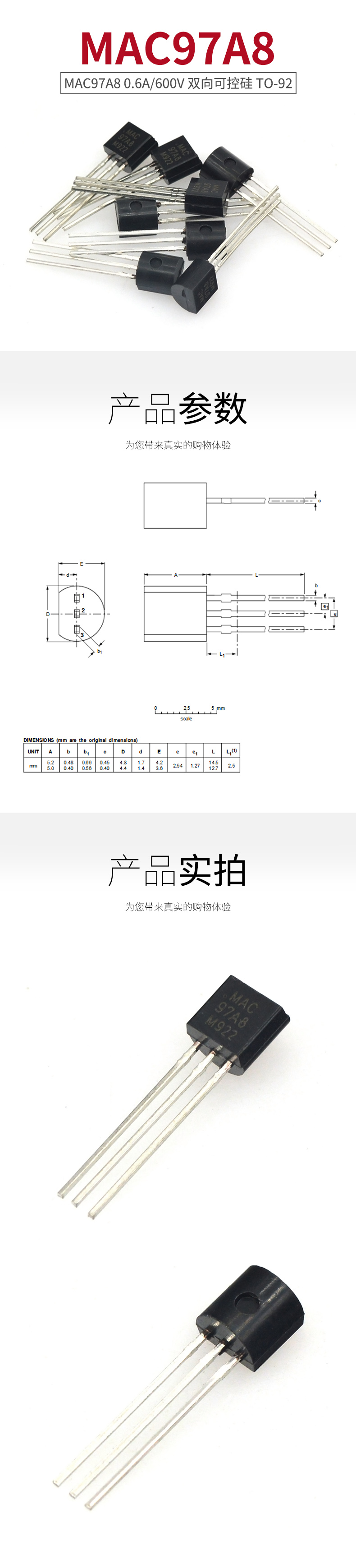 TaoTimeClub MAC97A8 0.6A/600V triac TO-92 10 pieces