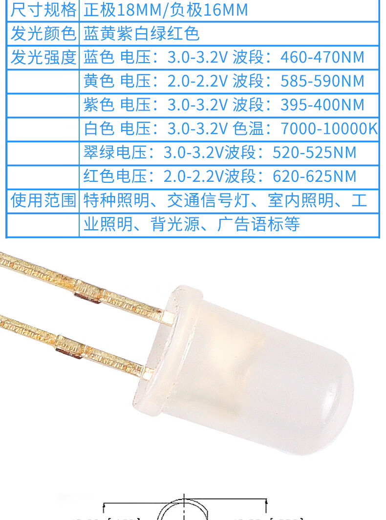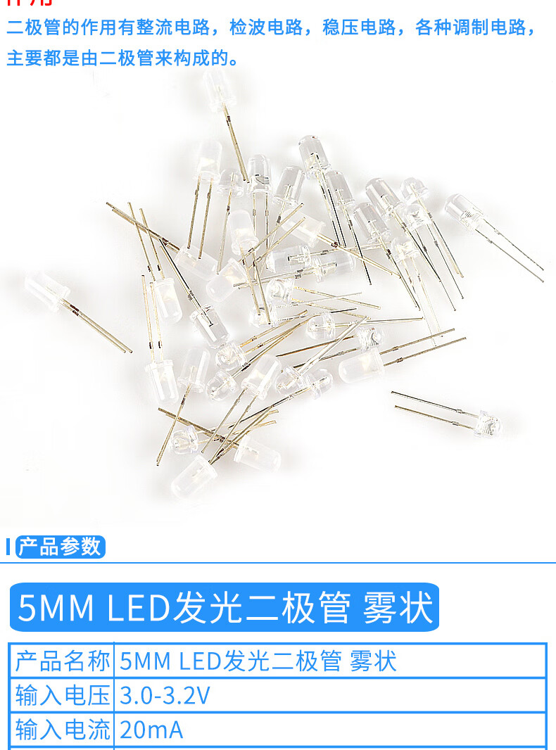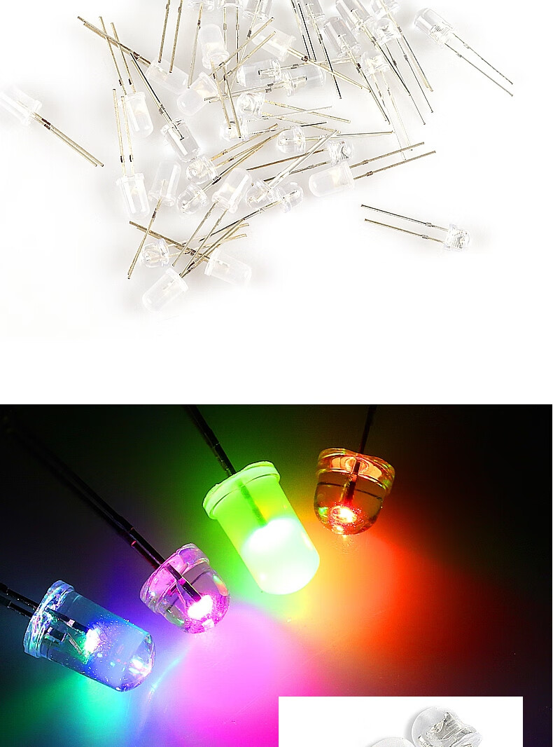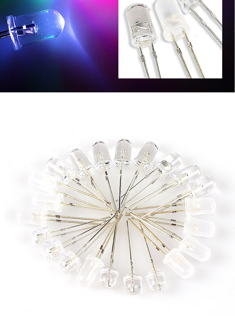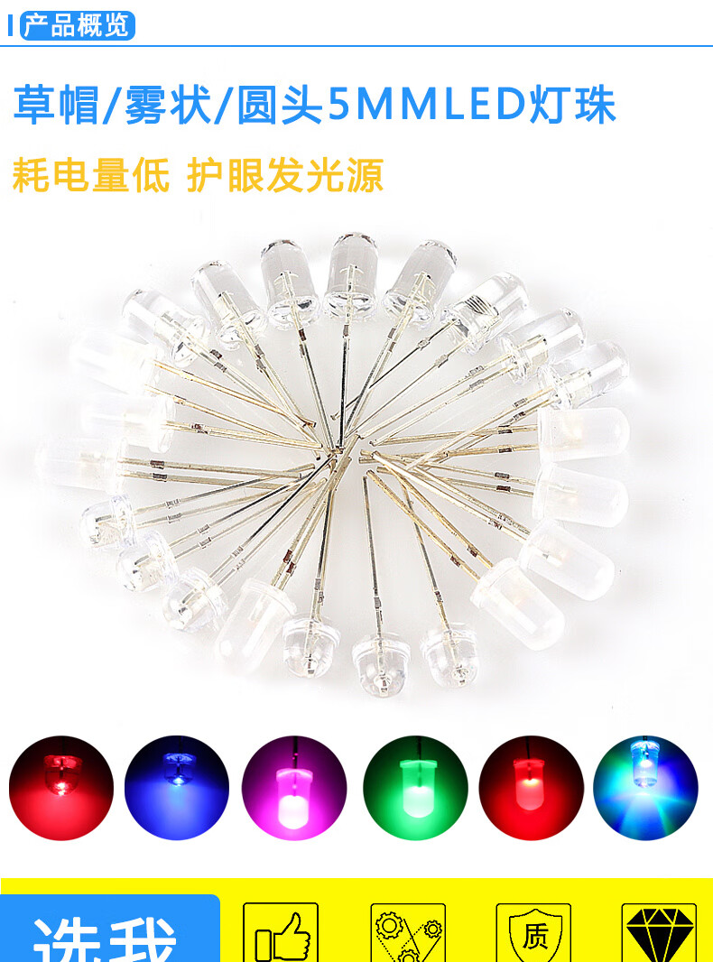 5MM LED lamp bead light emitting diode straw hat foggy white hair white emerald green blue yellow purple colorful slow flash 5MM foggy white hair red long legs (25 pcs)