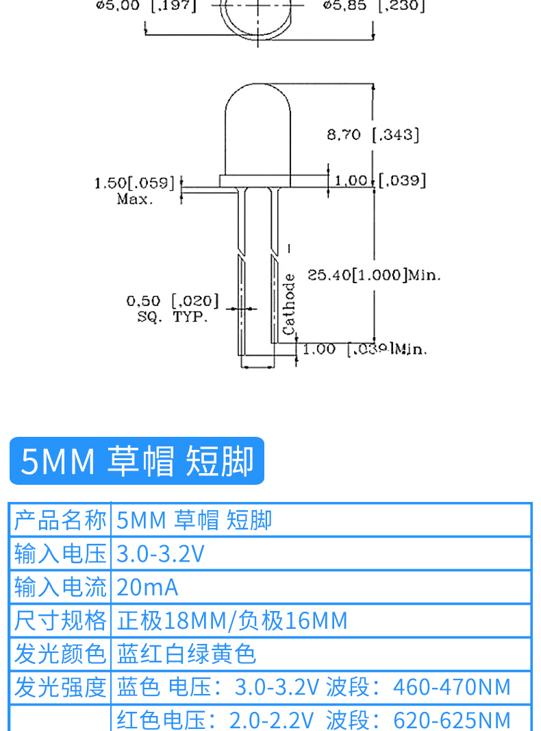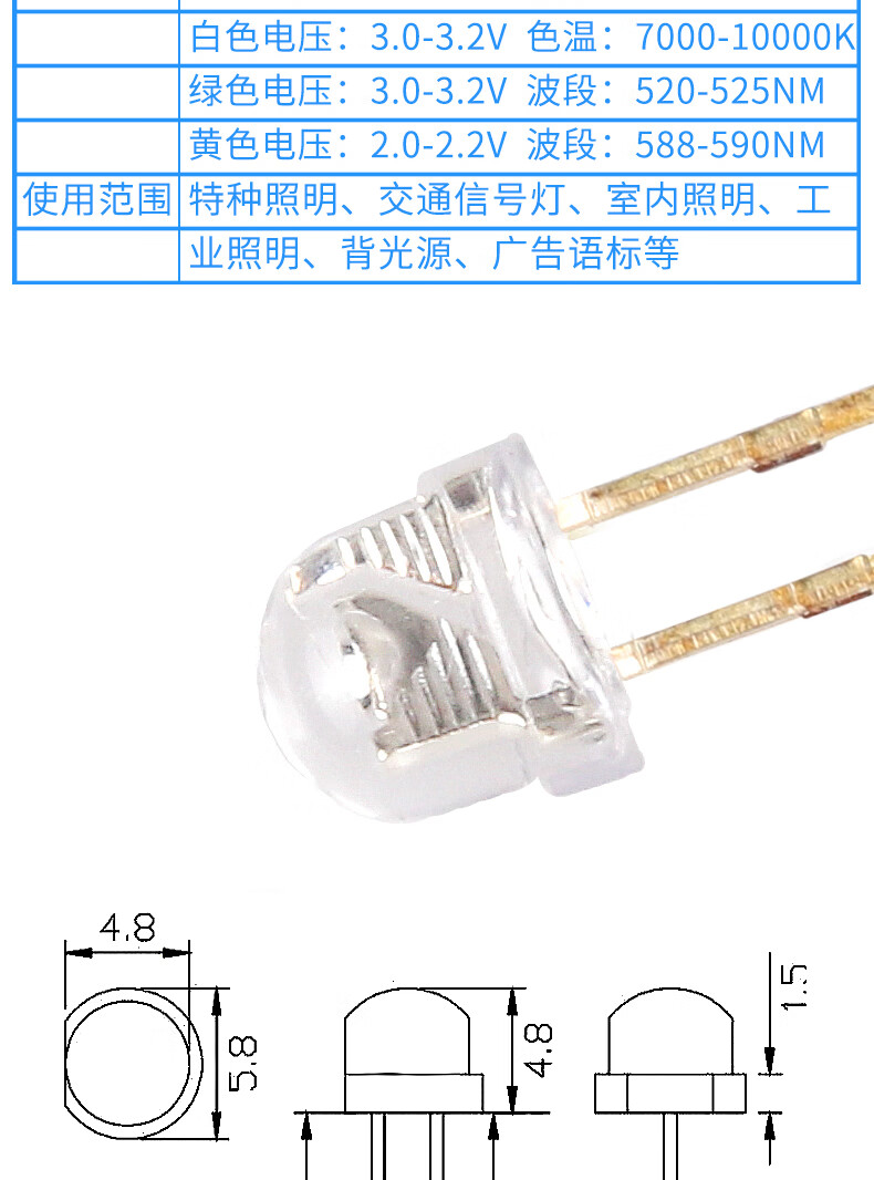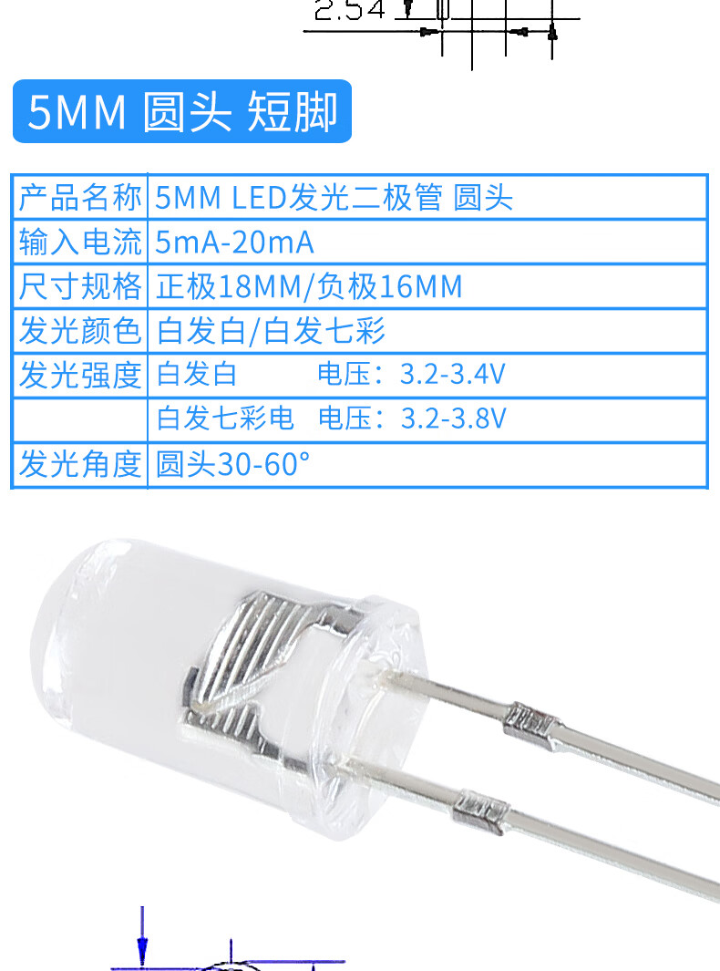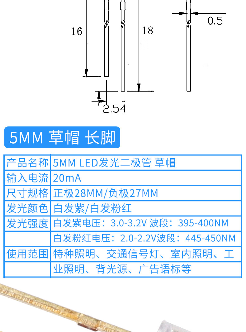 5MM LED lamp bead light emitting diode straw hat foggy white hair white emerald green blue yellow purple colorful slow flash 5MM foggy white hair red long legs (25 pcs)