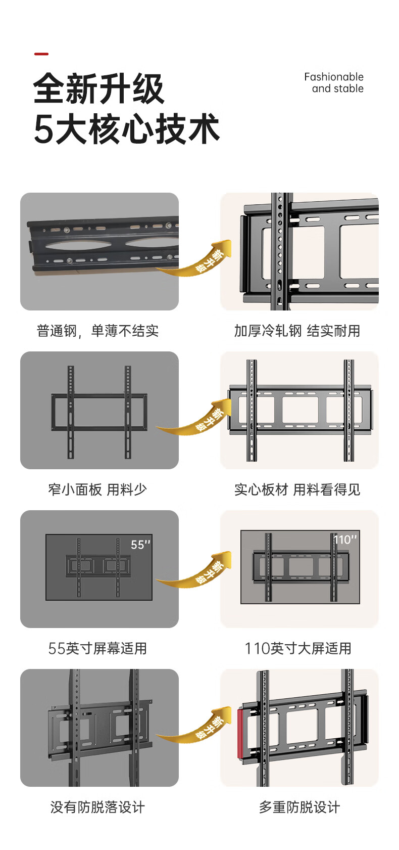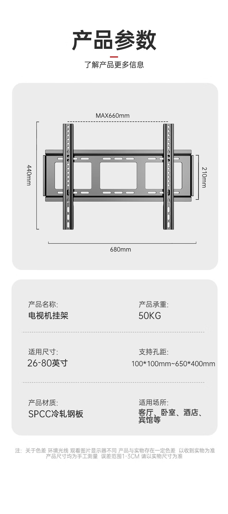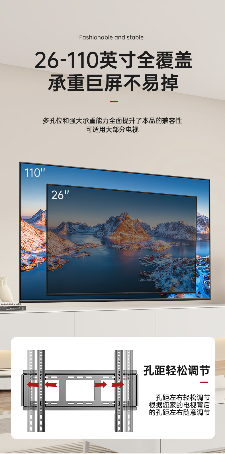 The repair will be suitable for Changhong TV bracket wall-mounted 55 65 70 75 85 100-inch wall-mounted universal 43-80-inch thickened and widened fixed version with a width of 660mm