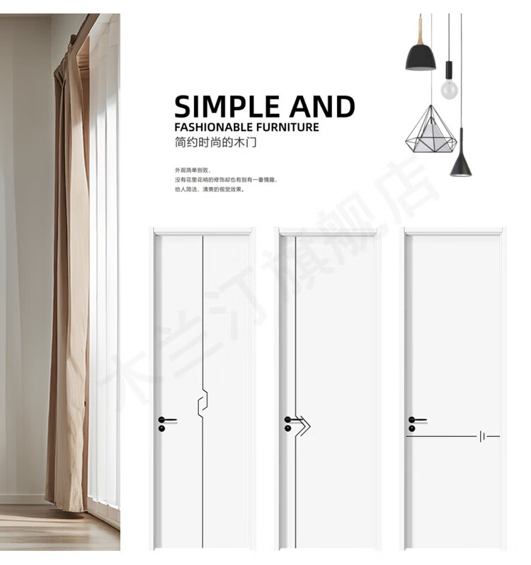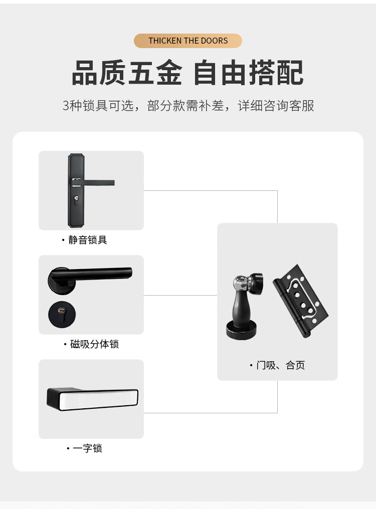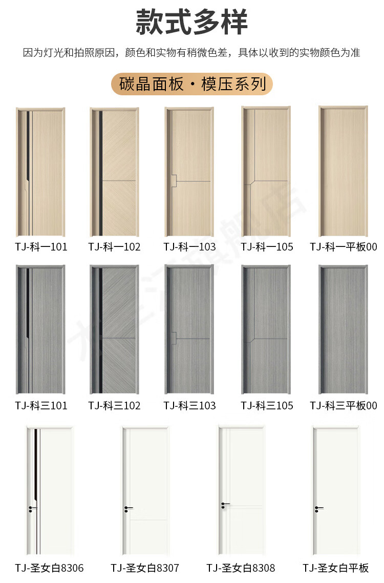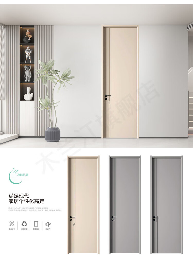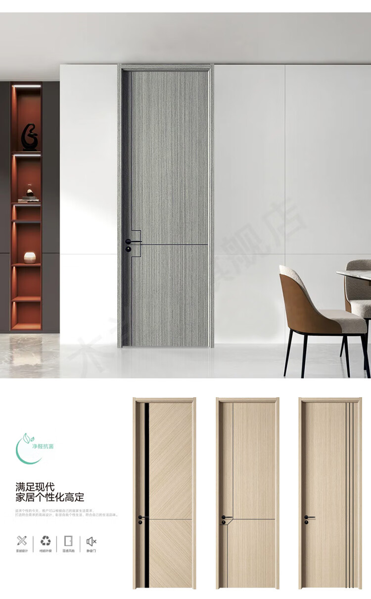 Indoor wooden door package installation, environmentally friendly solid wood composite door, white bedroom door, carbon crystal door, whole house set door, light luxury minimalist carbon fiber door, PET paint-free room door, technological wood molded model, free shipping package installation, standard tooling, honeycomb filling + step cover + free conventional locks