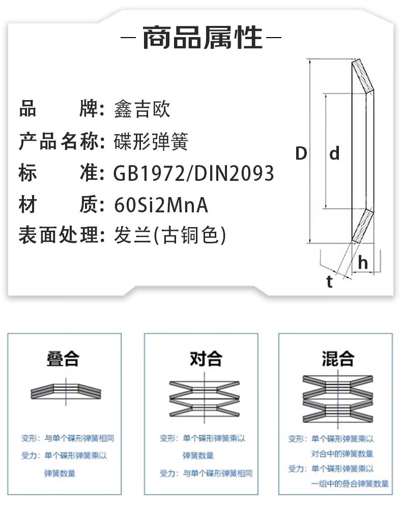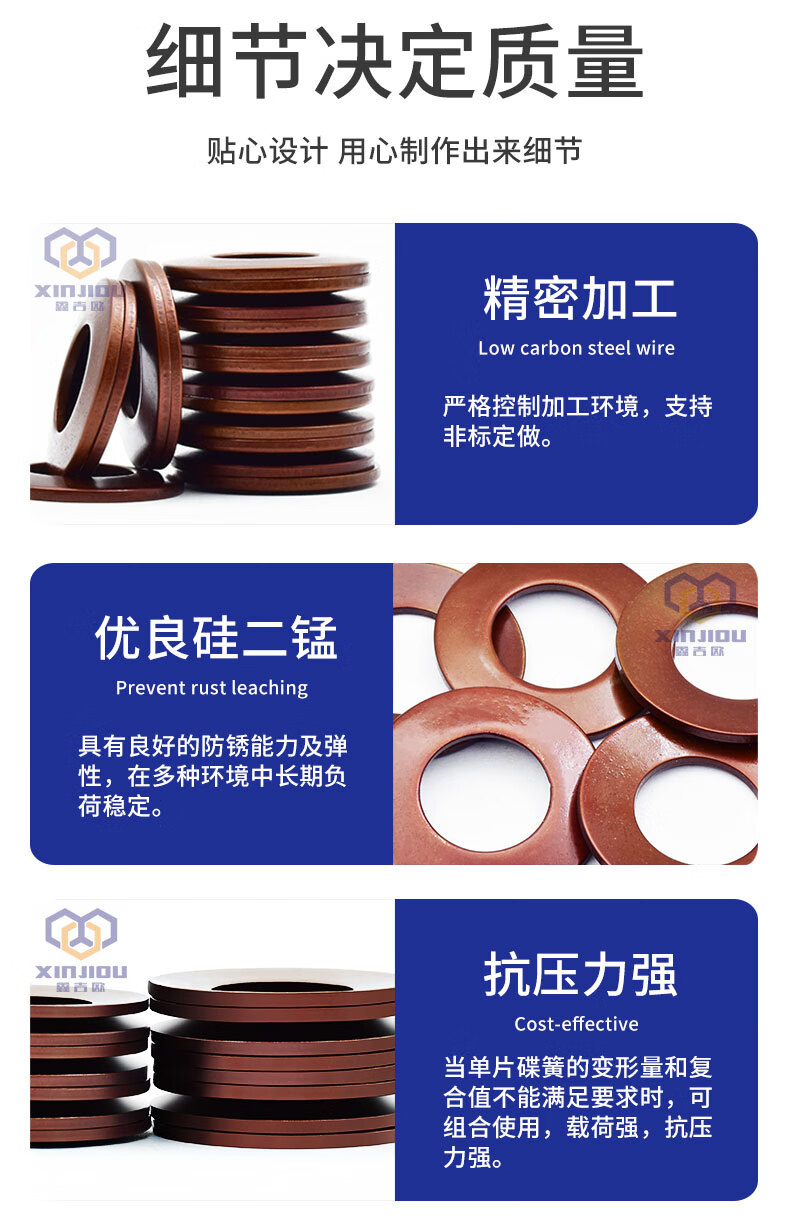Xinjiou disc spring 60Si2MnA butterfly spring gasket GB1972 disc spring gasket spring disc 160*82*10 1 piece