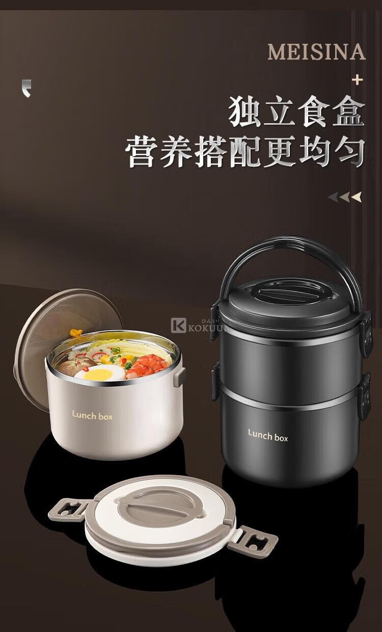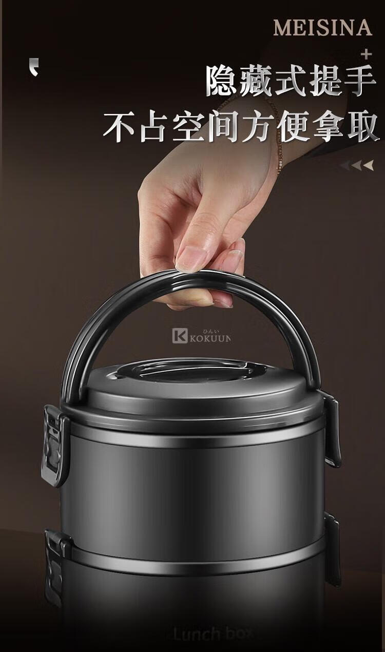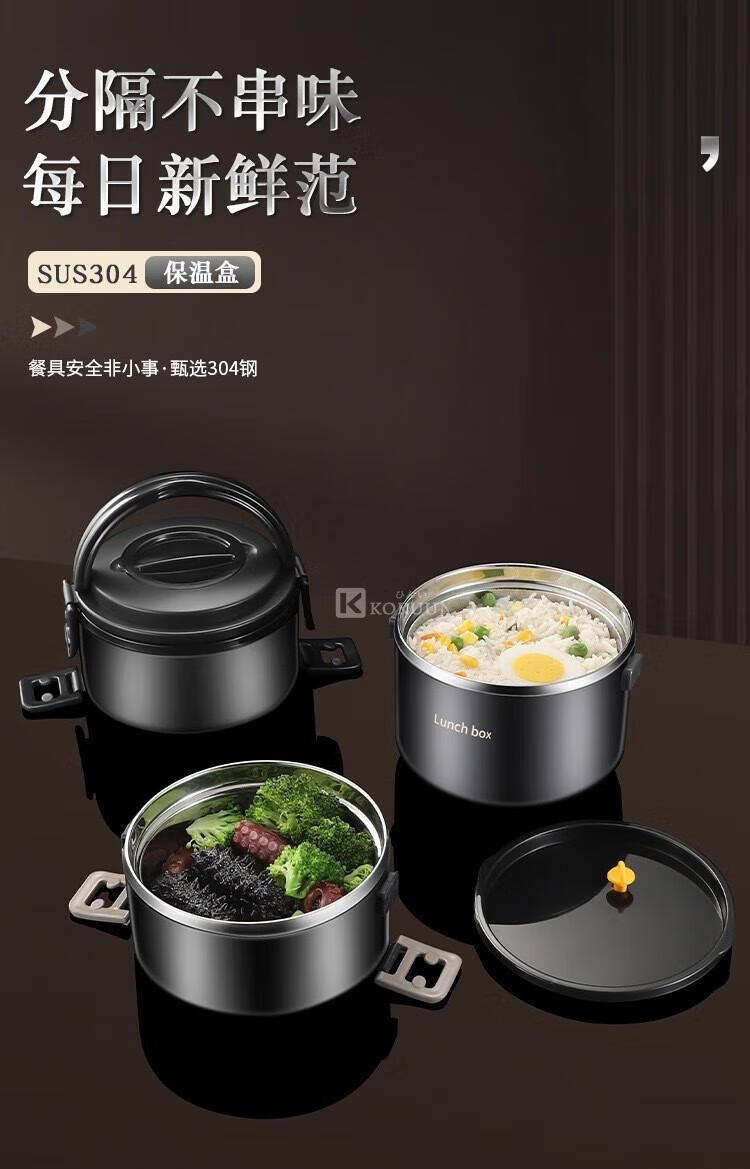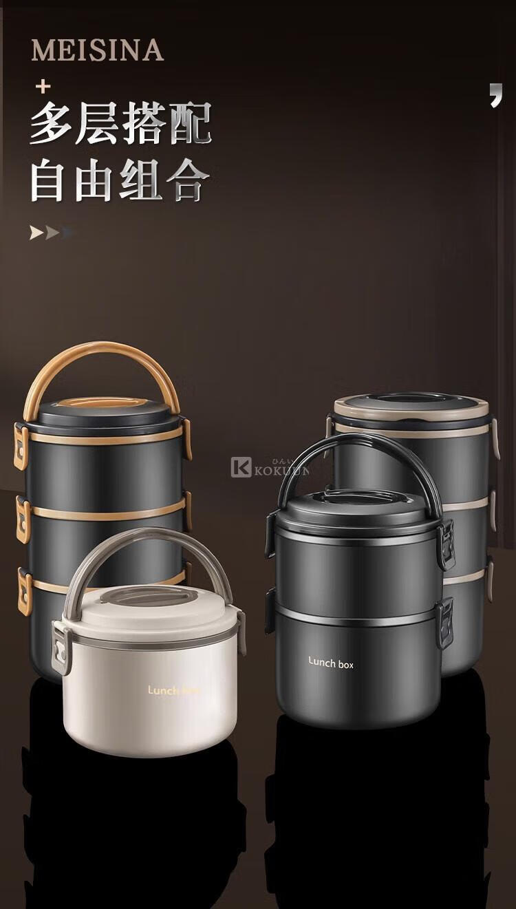 KOKUUN Japanese brand 304 stainless steel multi-layer insulated lunch box office worker lunch box large capacity vacuum crisper box black yellow edge lunch box (double layer)