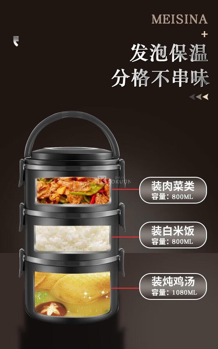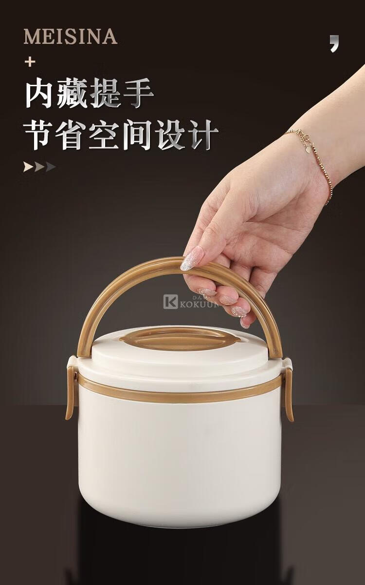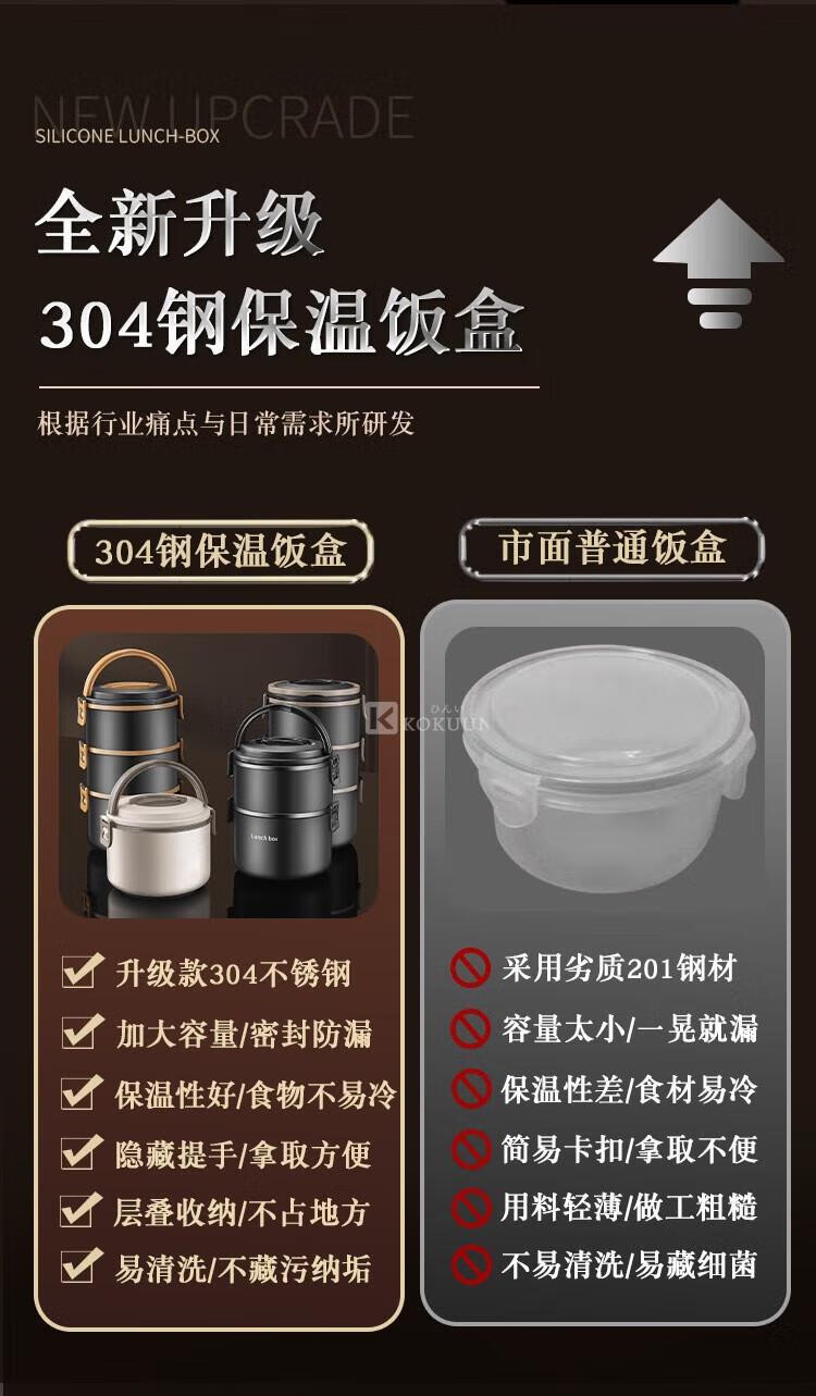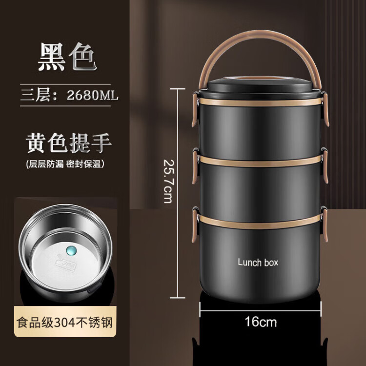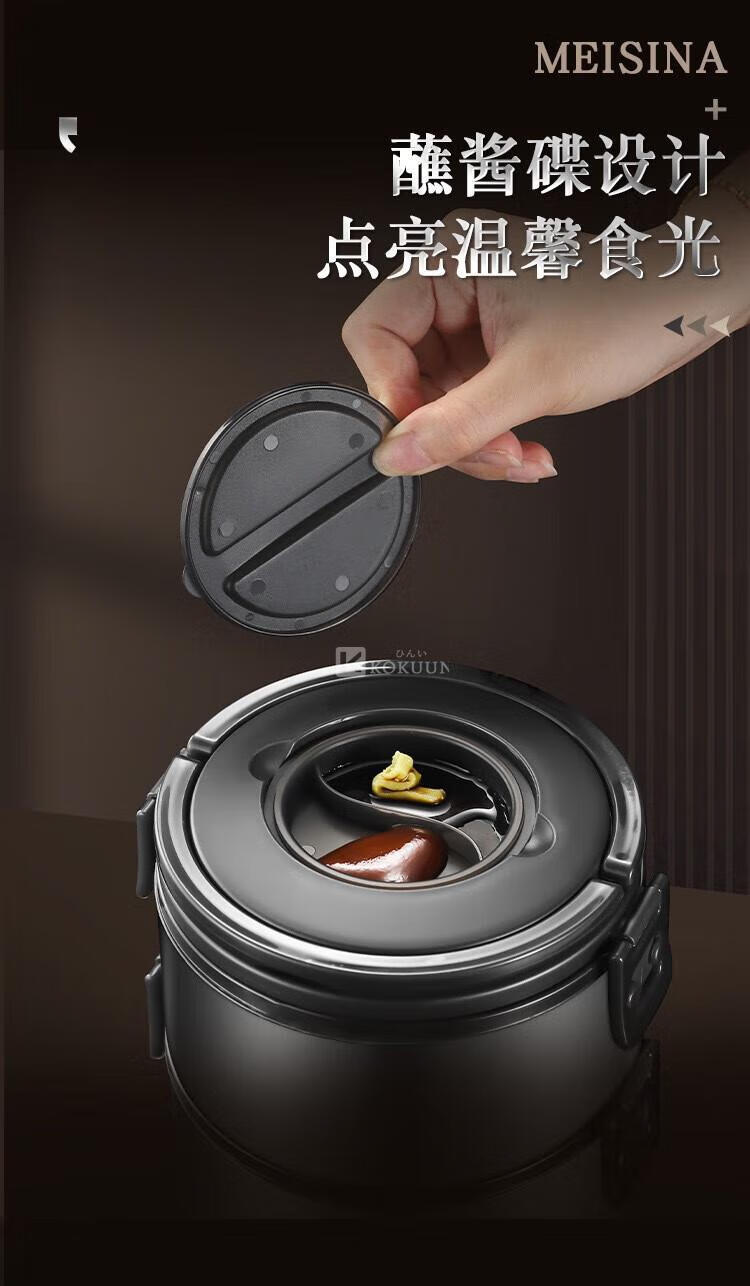 KOKUUN Japanese brand 304 stainless steel multi-layer insulated lunch box office worker lunch box large capacity vacuum crisper box black yellow edge lunch box (double layer)