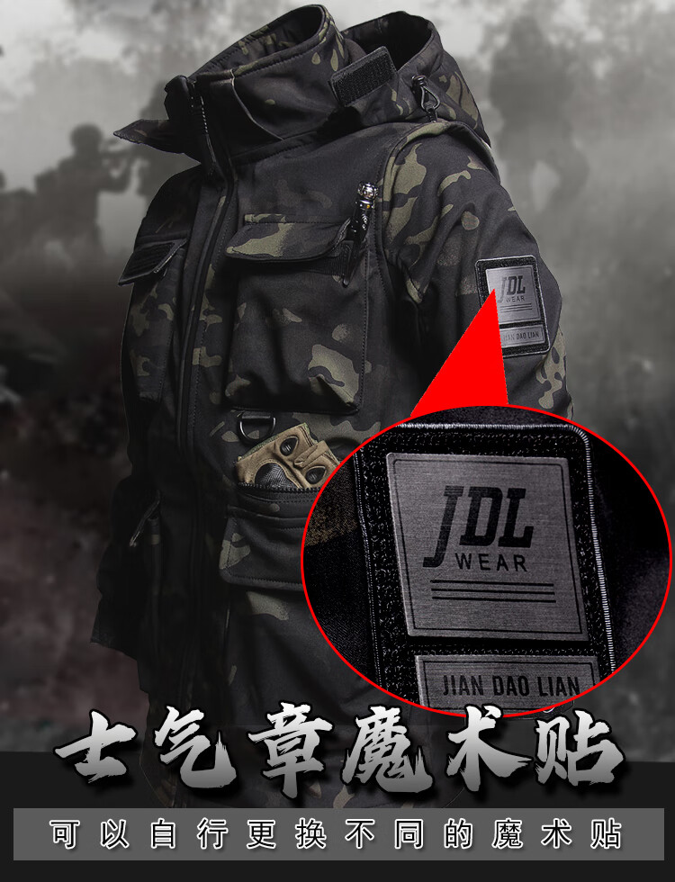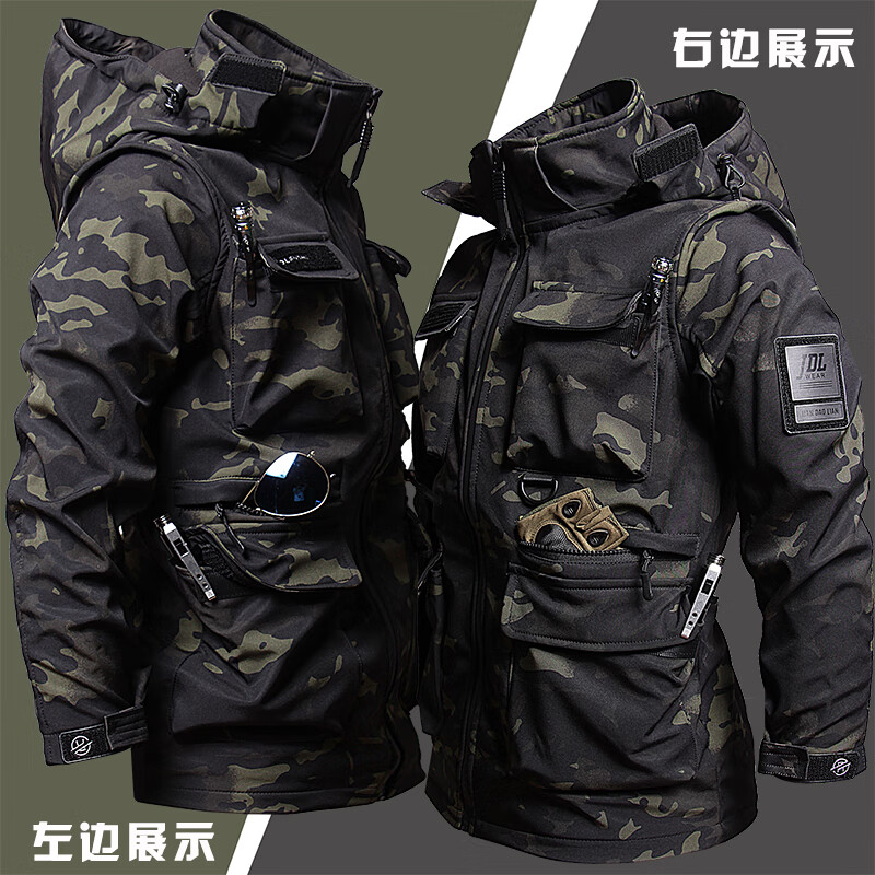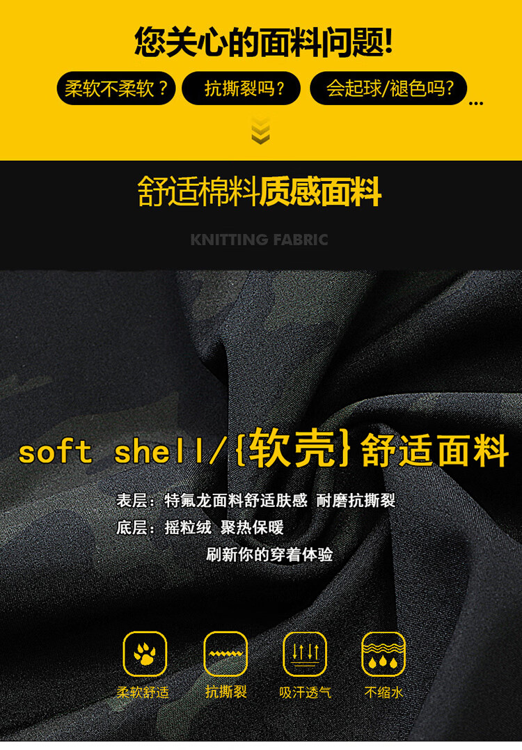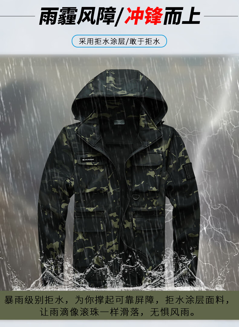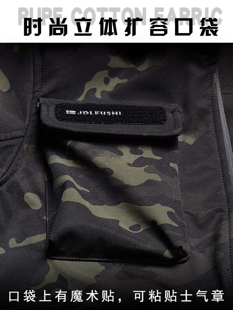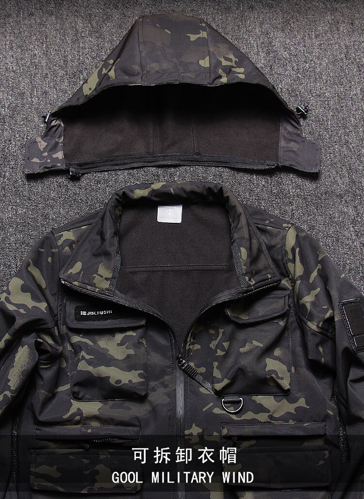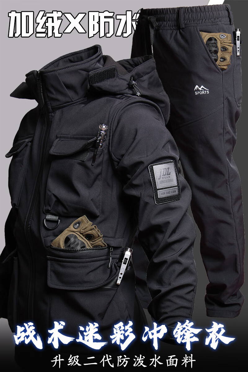 JEEP SPIRIT Spring, Autumn and Winter Soft Shell Outdoor Jacket Men's Military Fan Tactical Motorcycle Jacket Windproof and Waterproof Multifunctional Outer Suit 622 Black Suit 165 (95-110 catties)