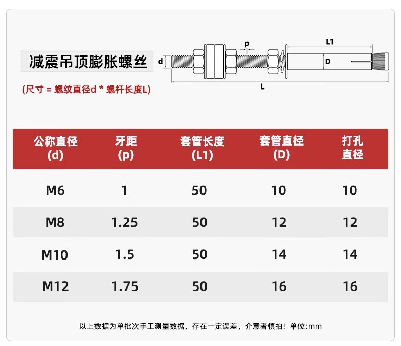 Fengji 304 stainless steel shock-absorbing expansion screw extended ceiling expansion bolt air conditioning boom M6M8M10M12mm M10*150