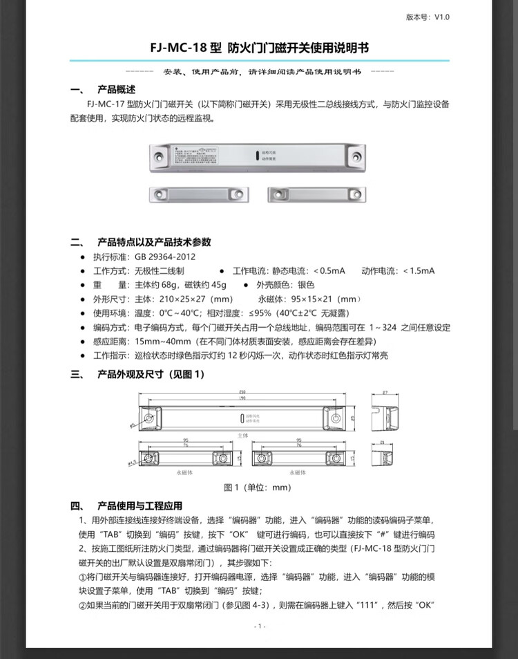 Fanhai Sanjiang Fireproof Door Magnetic Switch FJ-MC-18 Normally Closed Double Door FJ-MC-17 Single Door 16 Double Door 15 Single Door FJ-MC-18 Door Magnetic Switch (Normally Closed Double Door)