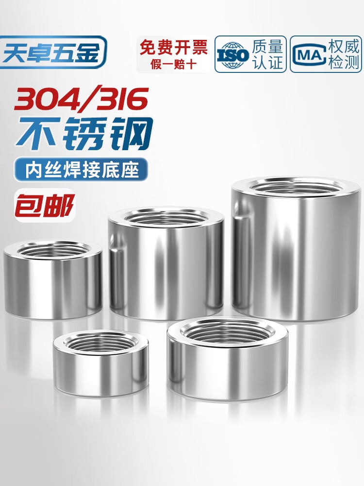 Tianzhuo Hardware 304/316 stainless steel internal wire threaded welding base plug internal wire welding base G1/2.3.4.6 points 1 inch G1-1/4 inch 316 material