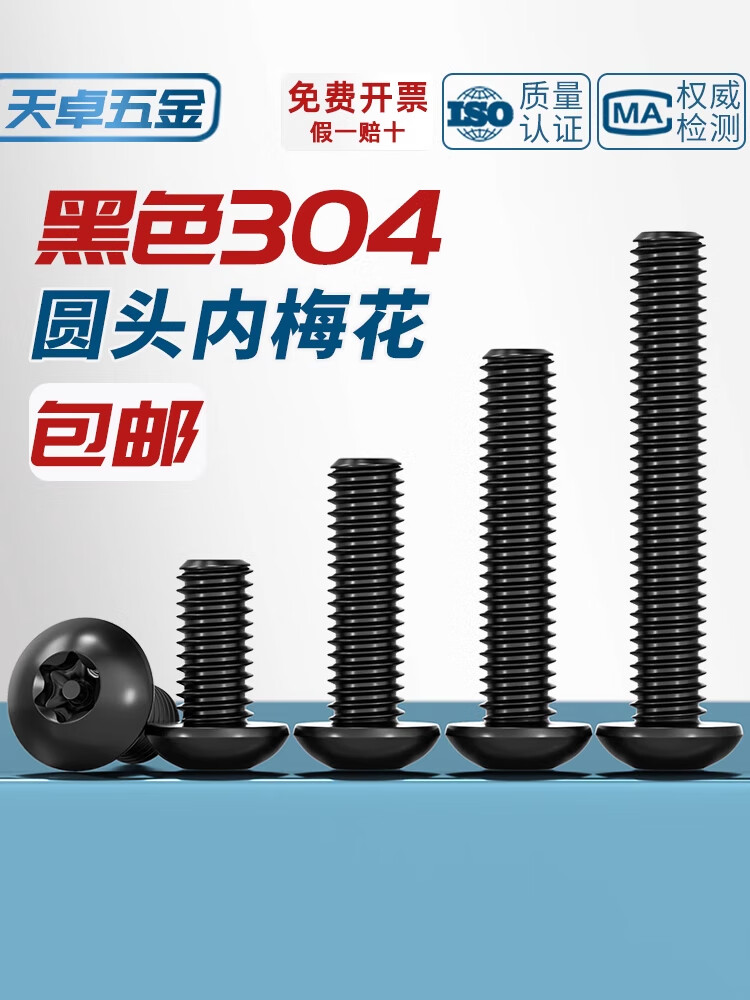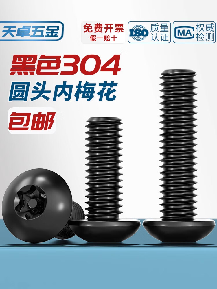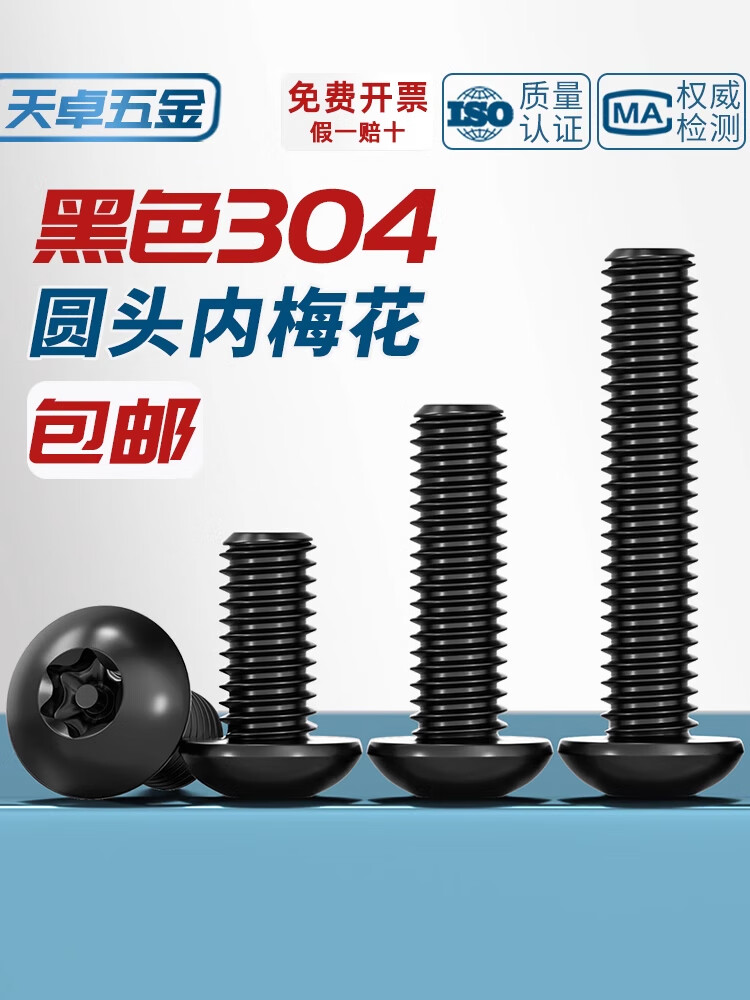 Tianzhuo Hardware black 304 stainless steel inner plum blossom anti-theft screw round head screw pan head with stud bolt m3M4M5M6M8M10 M6*16 5 pcs