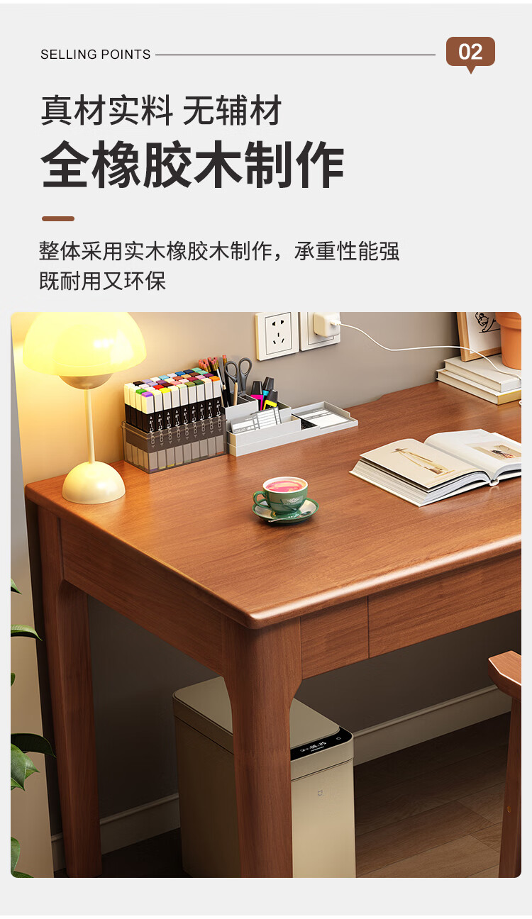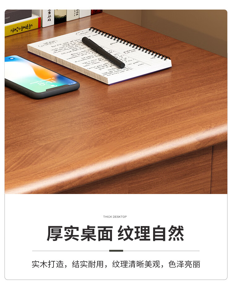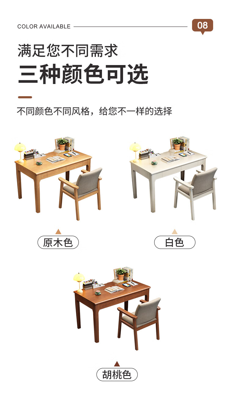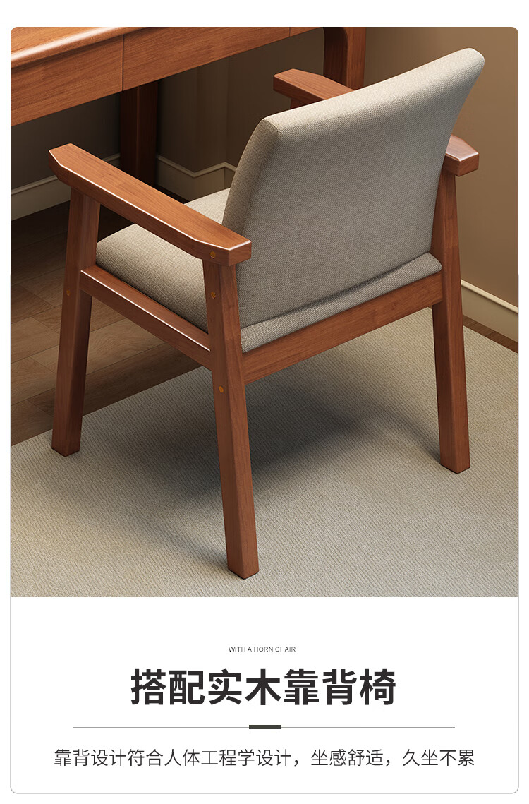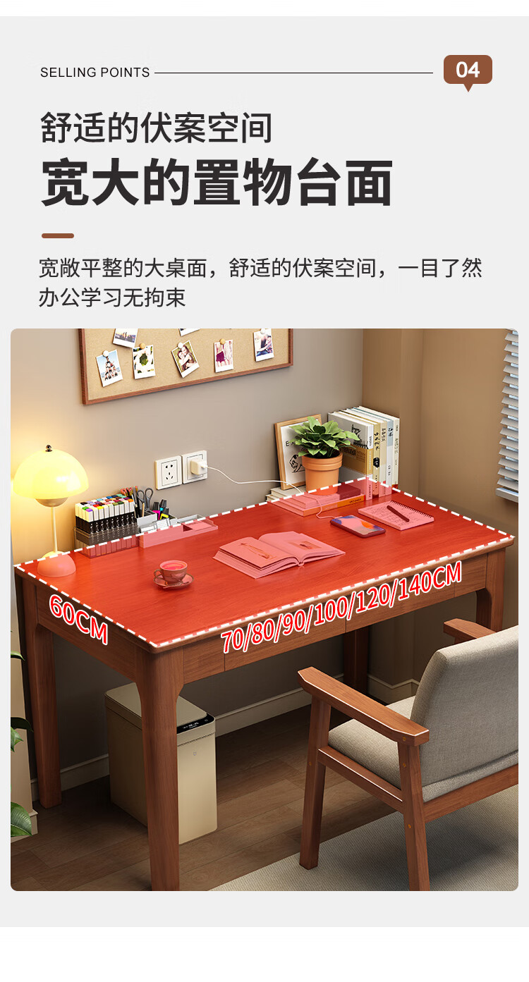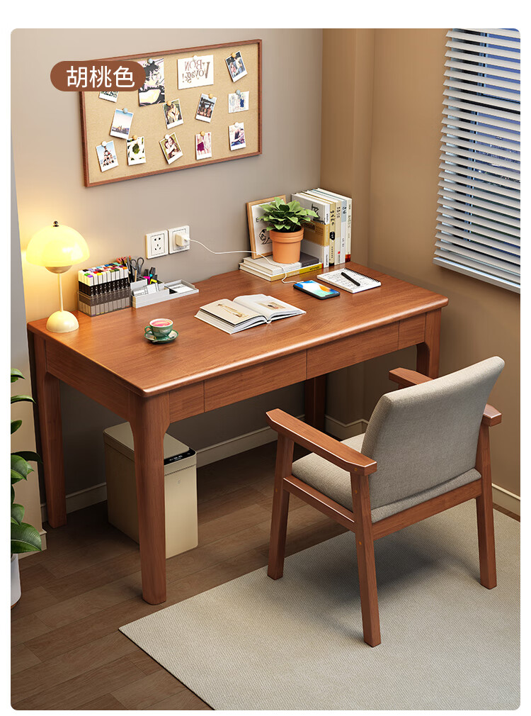 All solid wood desk without auxiliary materials Adult desk simple home desktop computer desk children and students writing desk Walnut color all solid wood desk + armchair 120*60*75cm-Length, width and height sorting