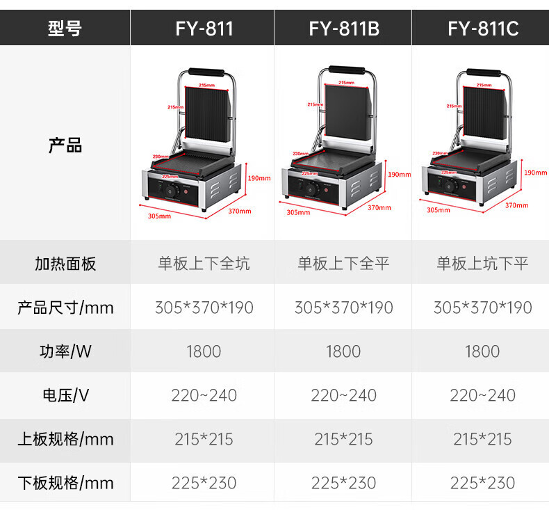 Short cloud panini machine commercial platen griddle double single head full pit flat duck intestine machine hot pressed sandwich machine commercial enlarged single head full flat