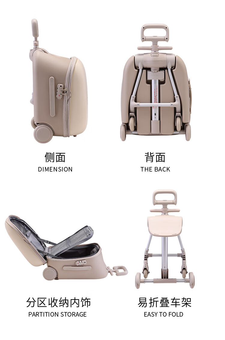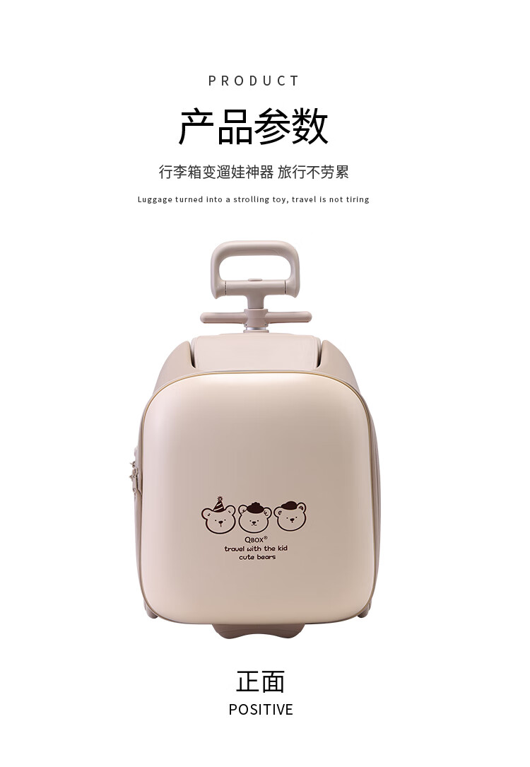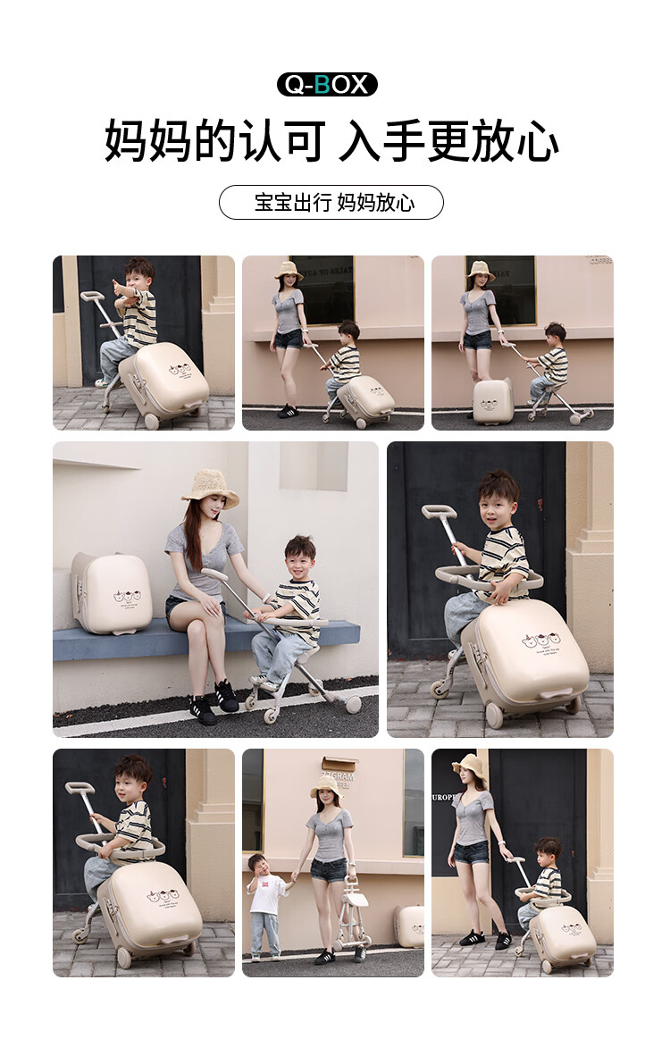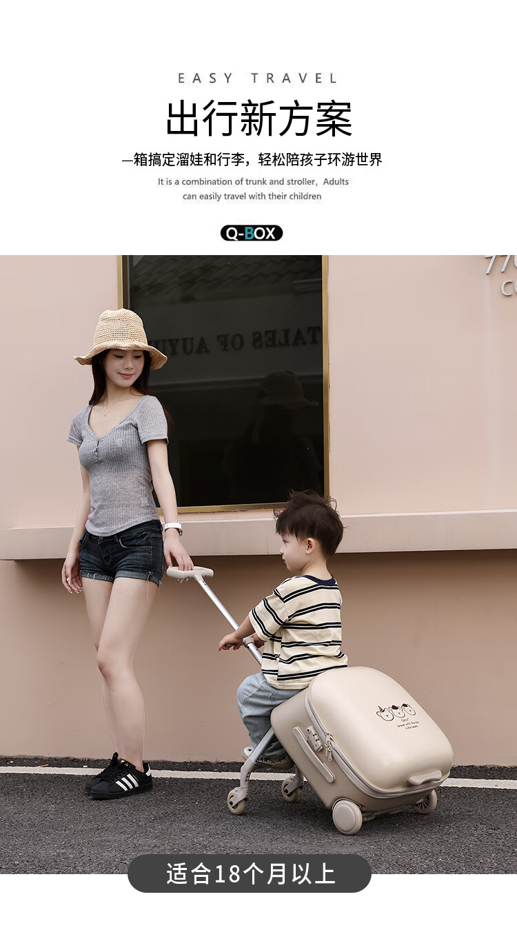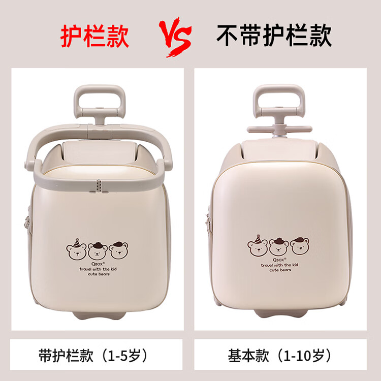 QBOX children's suitcase can board the plane, lazy stroller artifact can mount trolley suitcase for boys and girls, khaki expansion (56 liters) + guardrail gift pack 20 inches