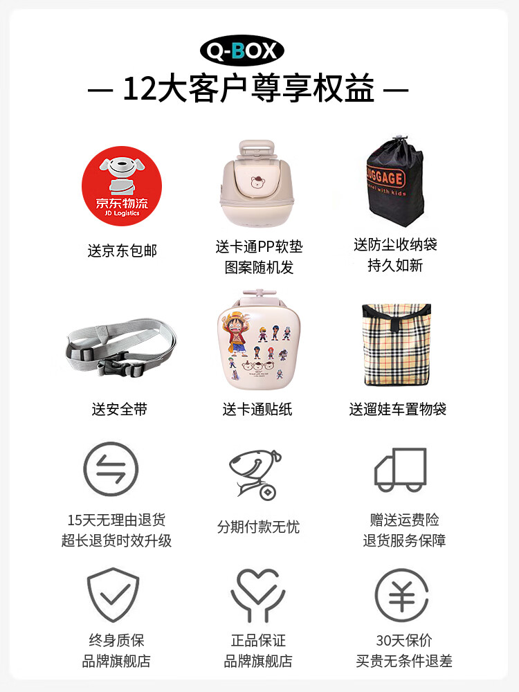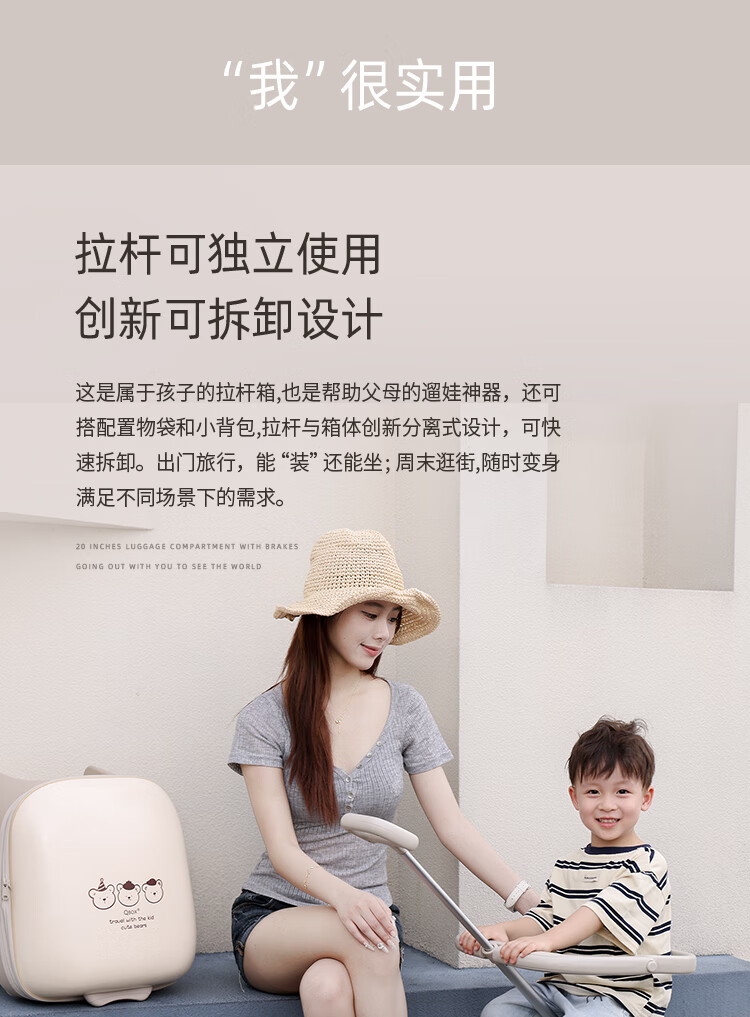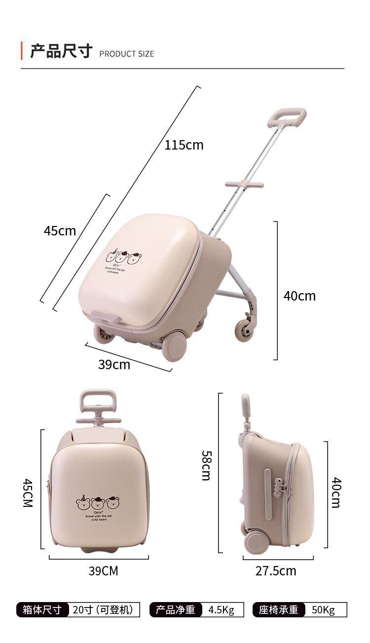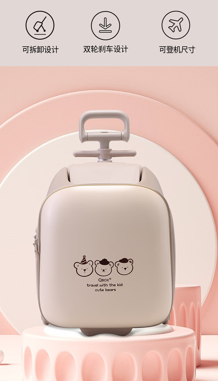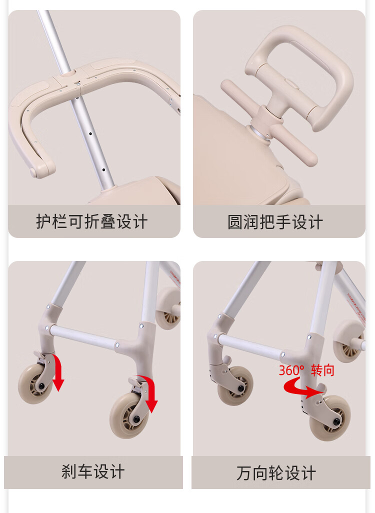 QBOX children's suitcase can board the plane, lazy stroller artifact can mount trolley suitcase for boys and girls, khaki expansion (56 liters) + guardrail gift pack 20 inches