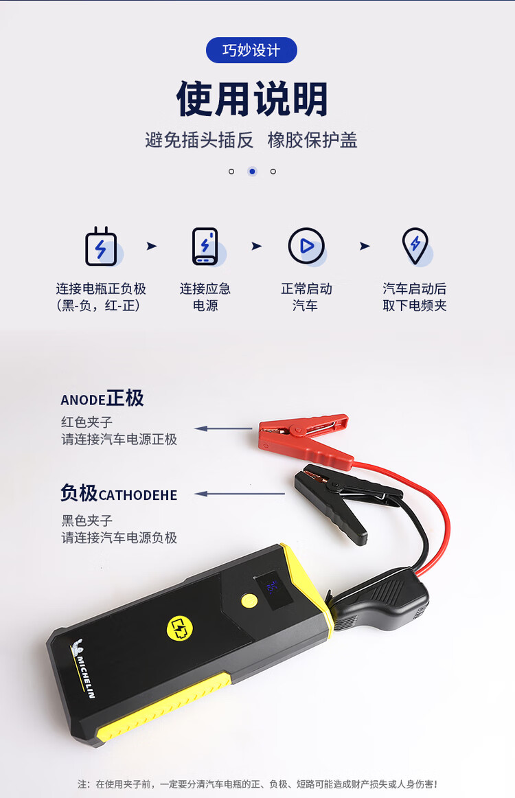 Michelin car emergency starting power supply large capacity 12v battery ignition power bank starting power supply flagship model 4165ML + storage hot press bag