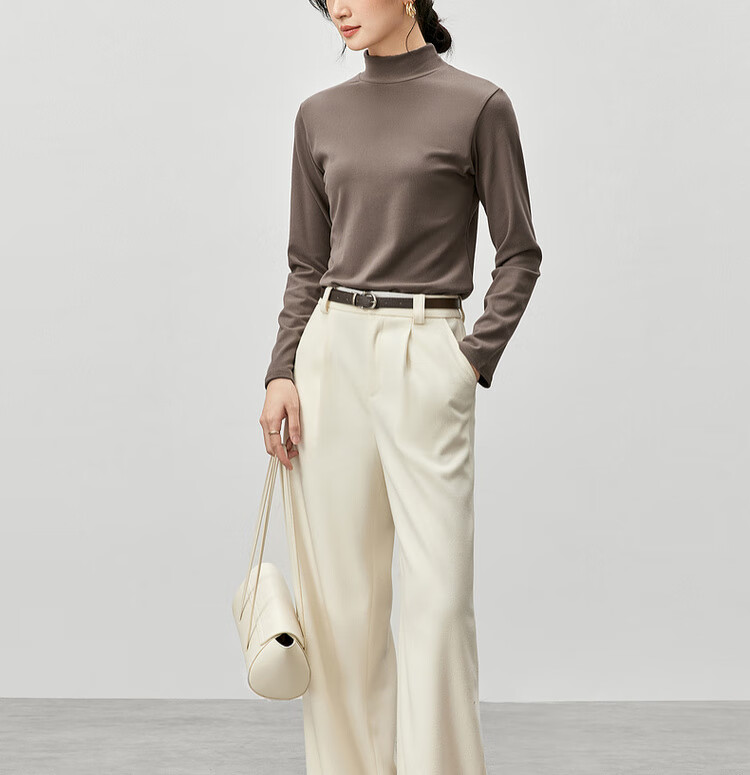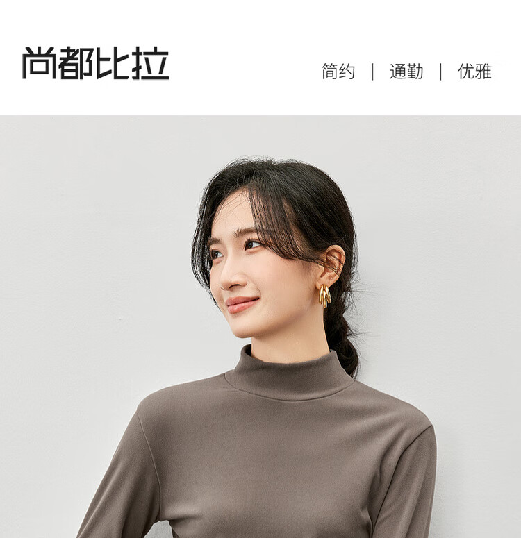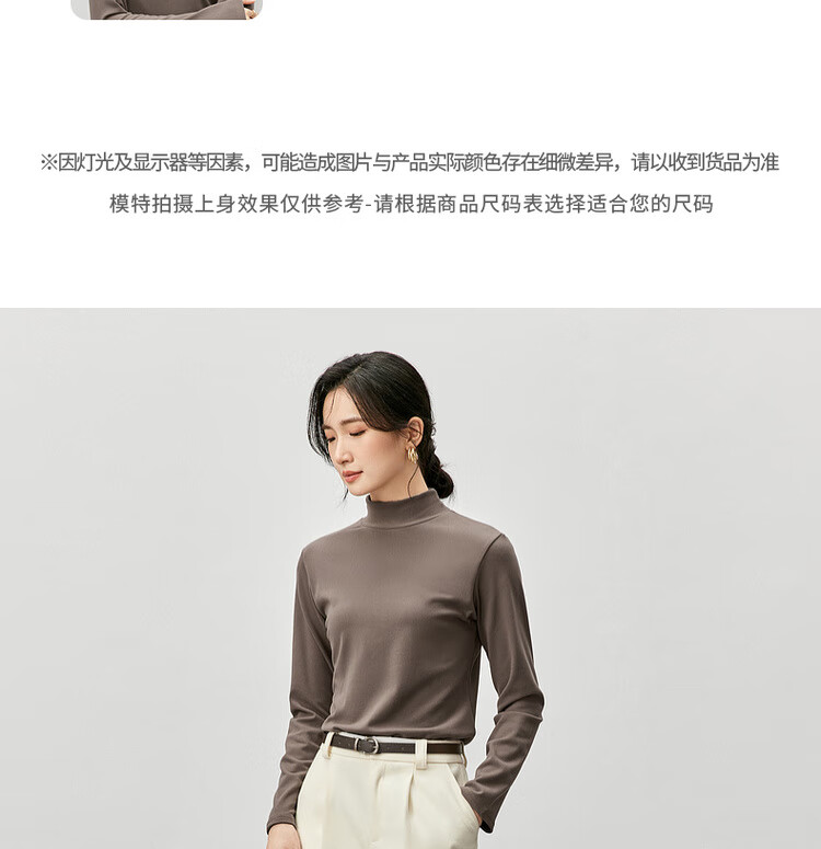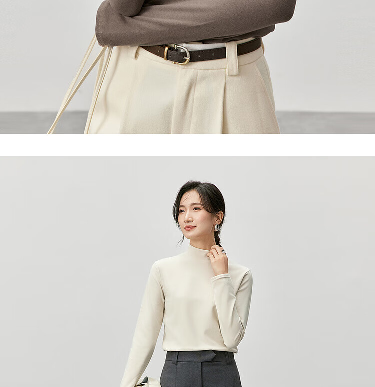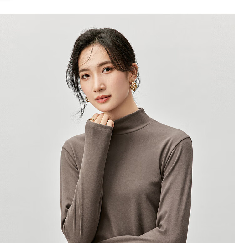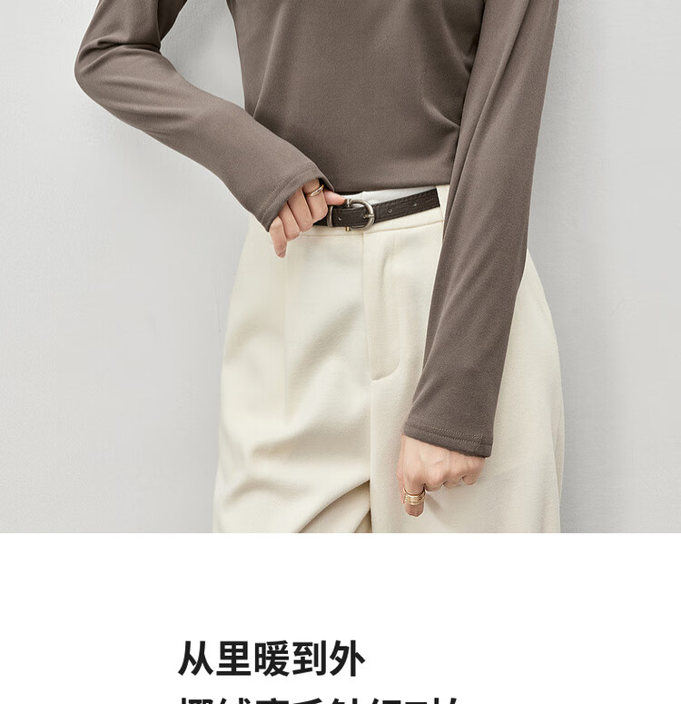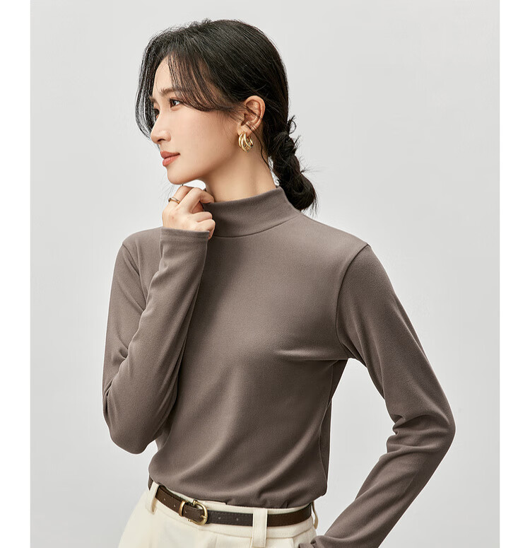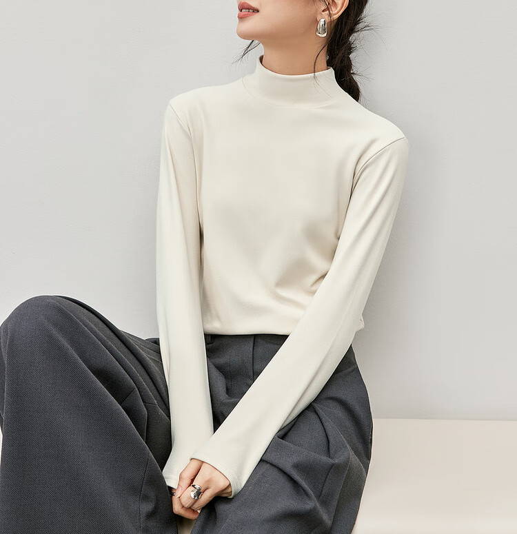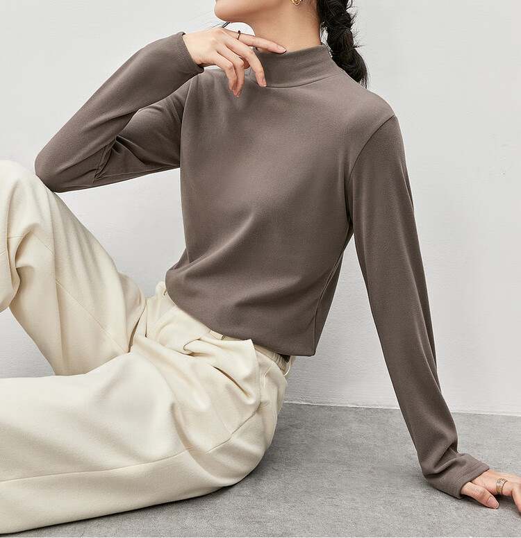 Shandubila's 24th winter new product warm coconut velvet semi-high stand-up collar bottoming shirt brushed T-shirt women's autumn and winter new inner top Milk Tea Apricot L