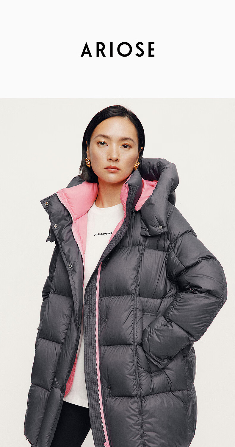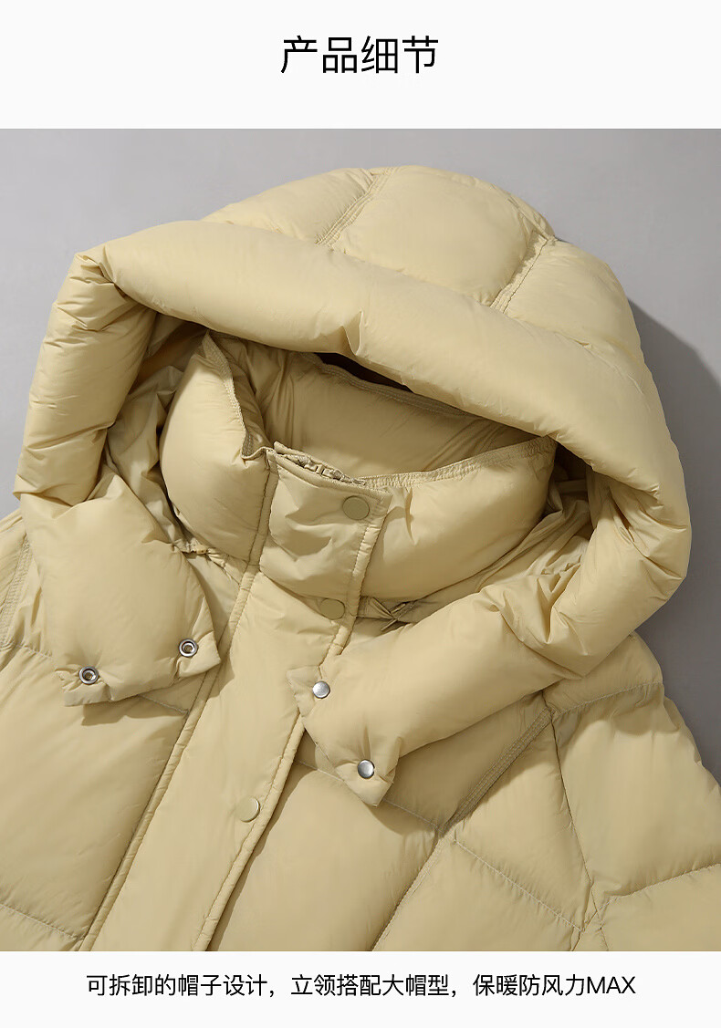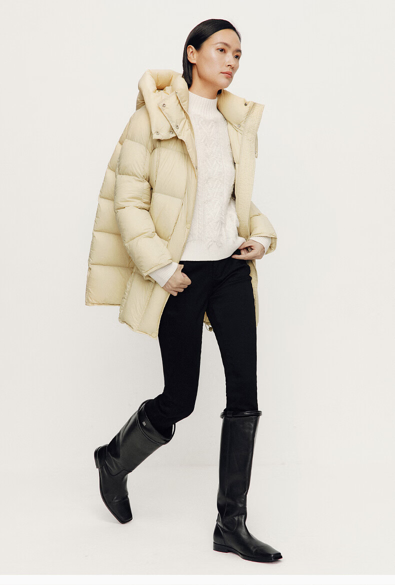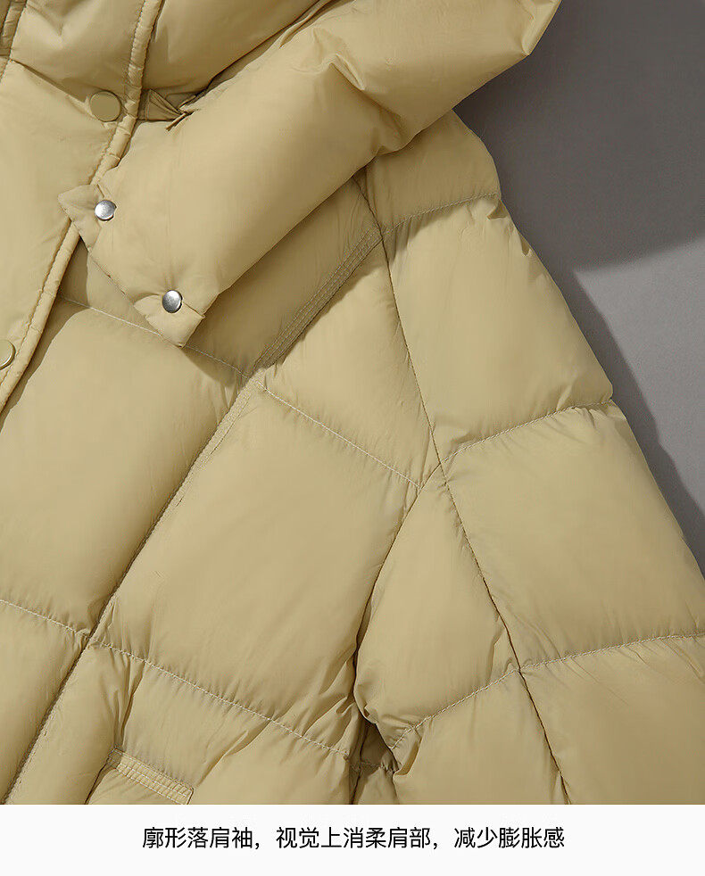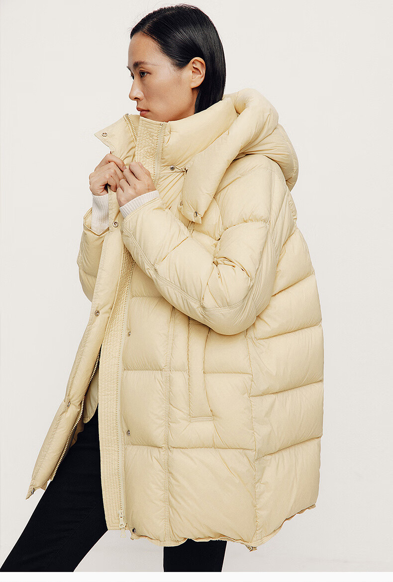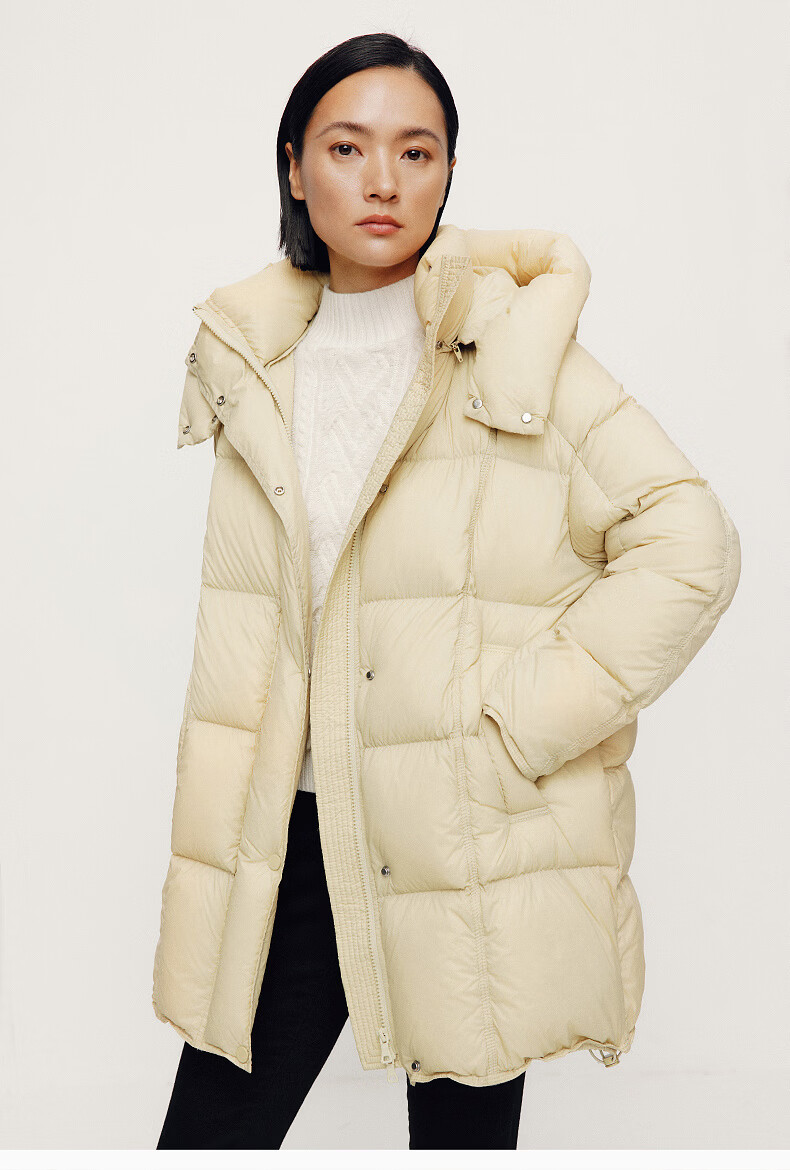ARIOSE winter new loose warm goose down mid-length down jacket hooded jacket 31110031 vanilla yellow L