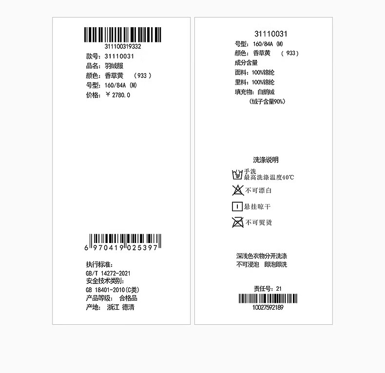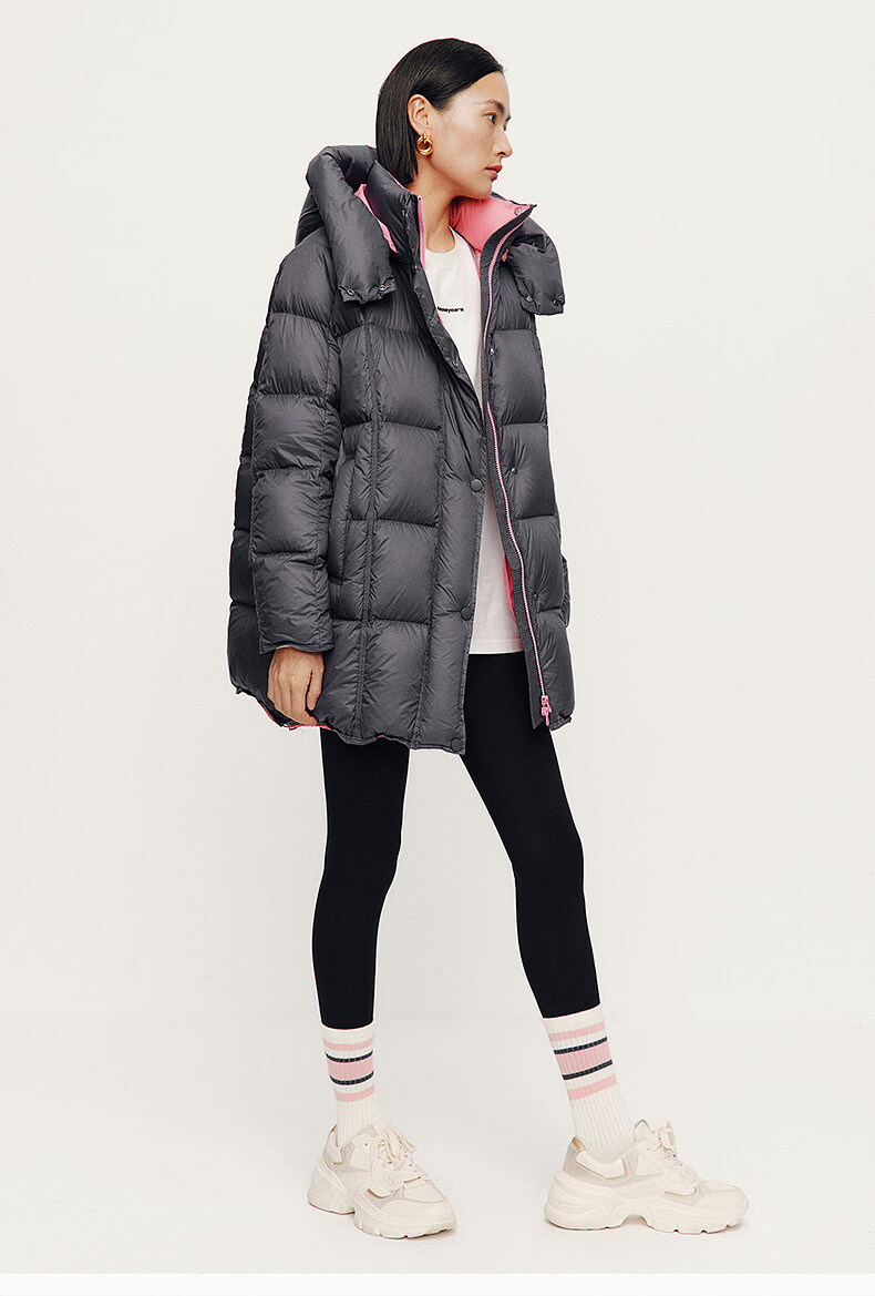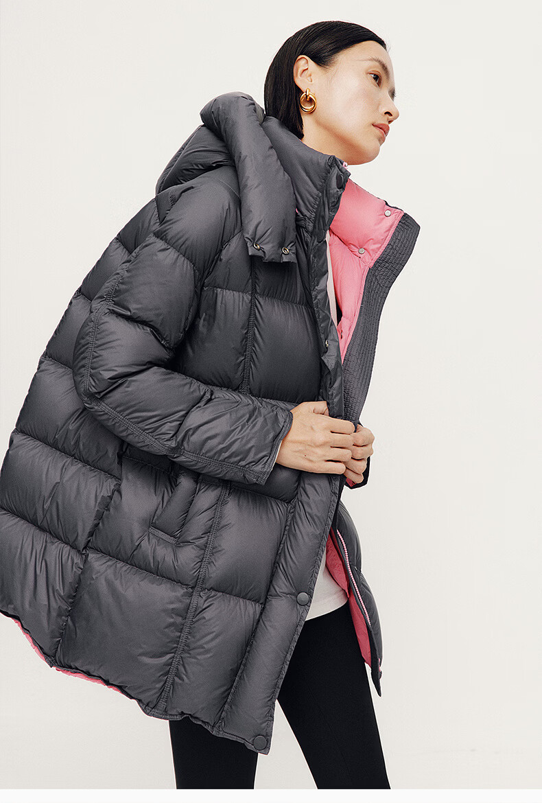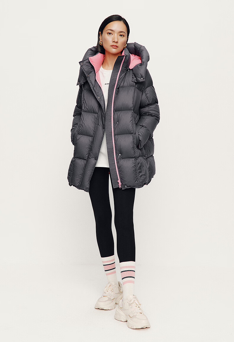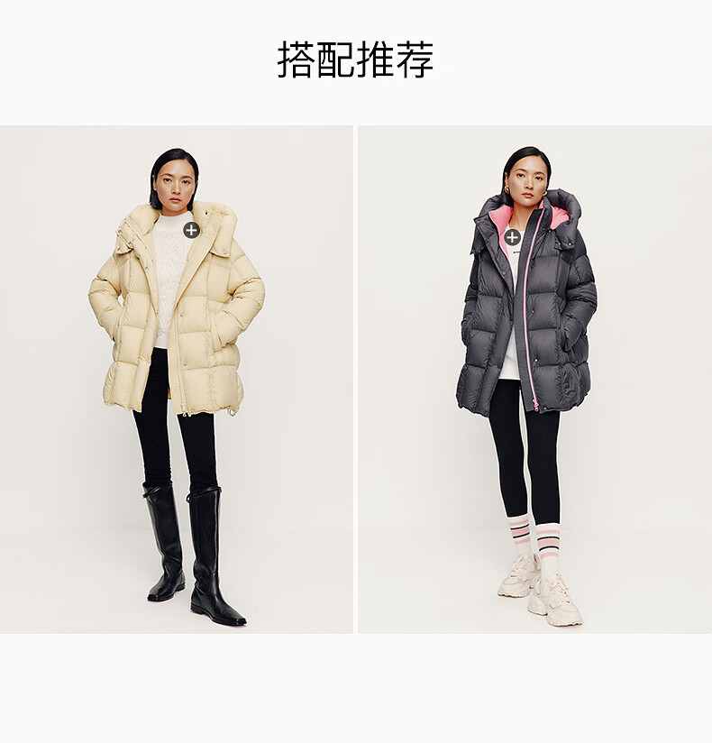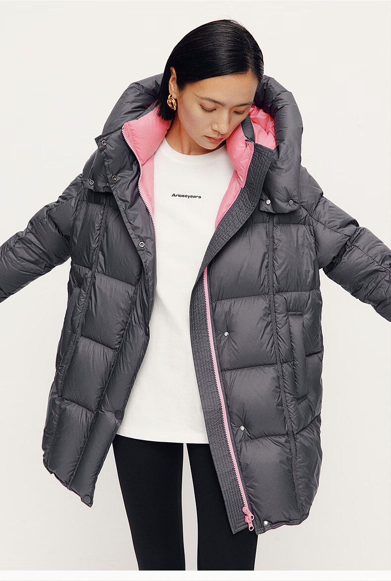 ARIOSE winter new loose warm goose down mid-length down jacket hooded jacket 31110031 vanilla yellow L