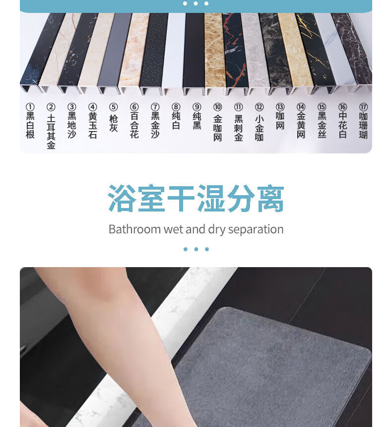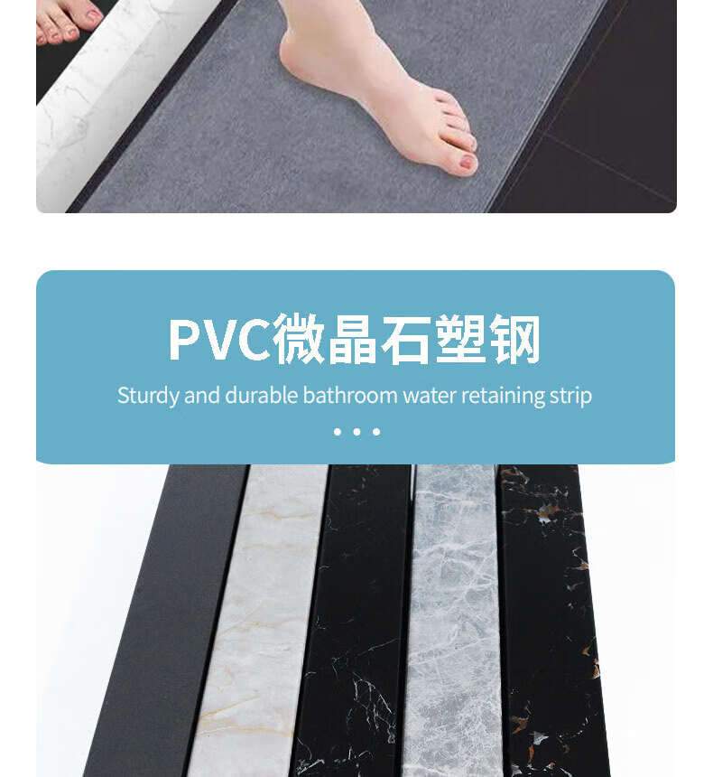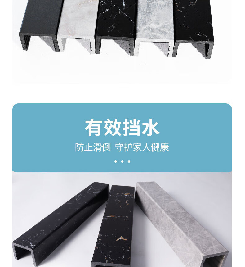 Guicheng Guokai water retaining strip bathroom imitation marble shower room bathroom floor partition dry and wet separation stone-based PVC waterproof strip Black Jinsha Height 5 width 61.8 meters
