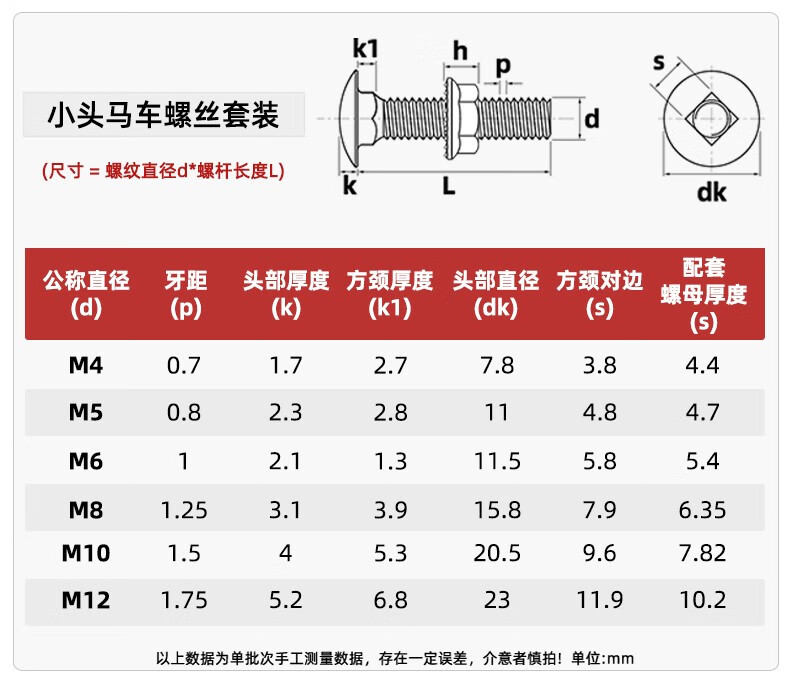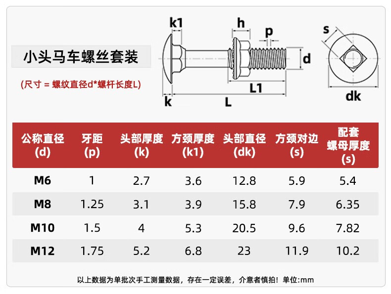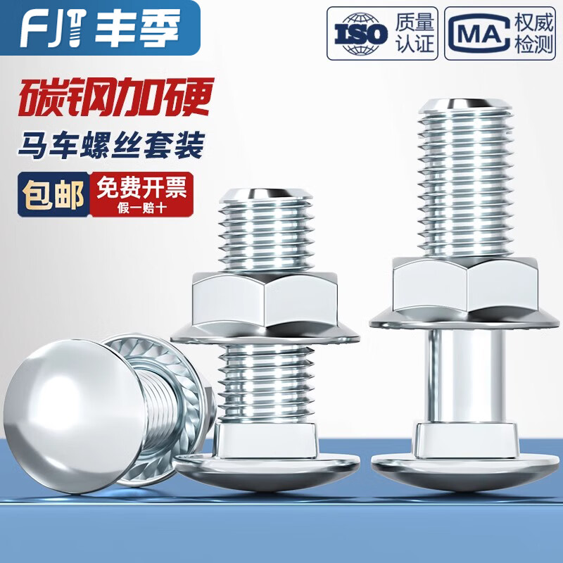 Fengji galvanized carriage screw nut set semi-round head square neck shelf special combination bolt M4M5M6M8M10M12 M5*50 20 sets