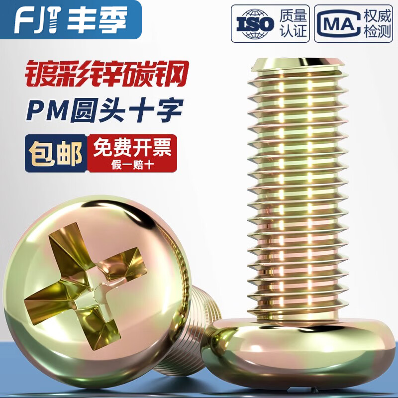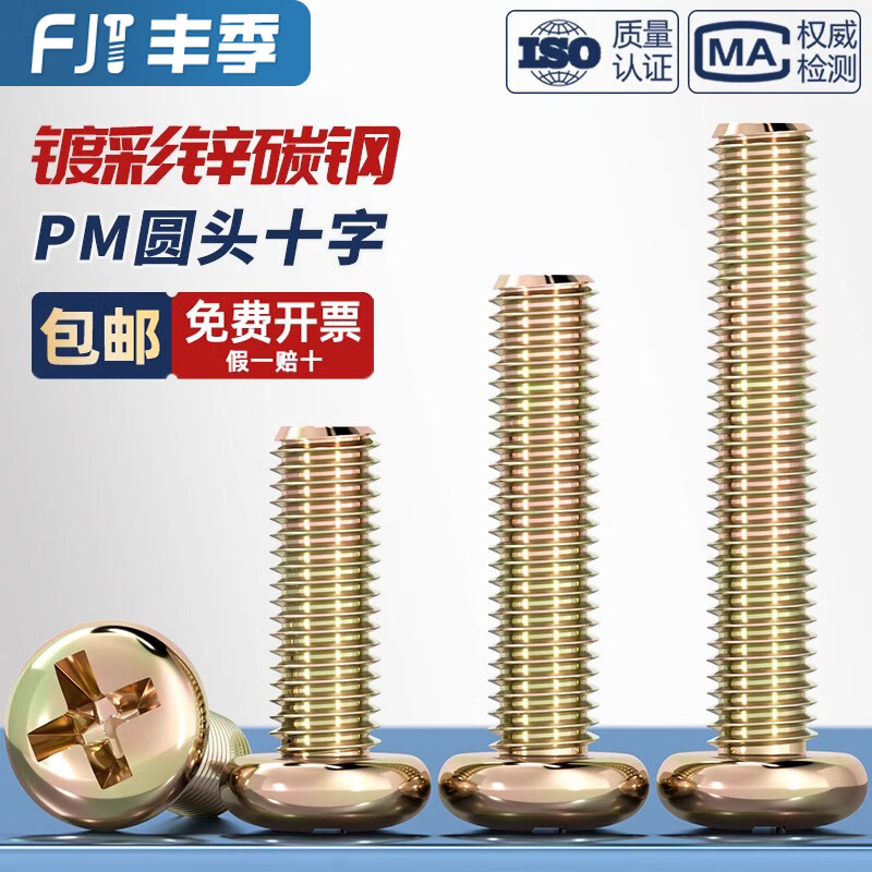 Fengji color zinc plated round head cross screw iron half round head small screw switch pan head machine wire screw M3M4M5M6M8mm M8*60 10 pieces color zinc