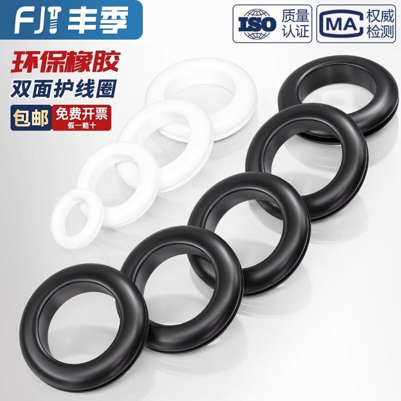 Fengji rubber double-sided protective coil round hole through-coil threading protective sleeve out-coil wire distribution box through-hole apron black inner diameter 70 openings 80 (2 pieces)