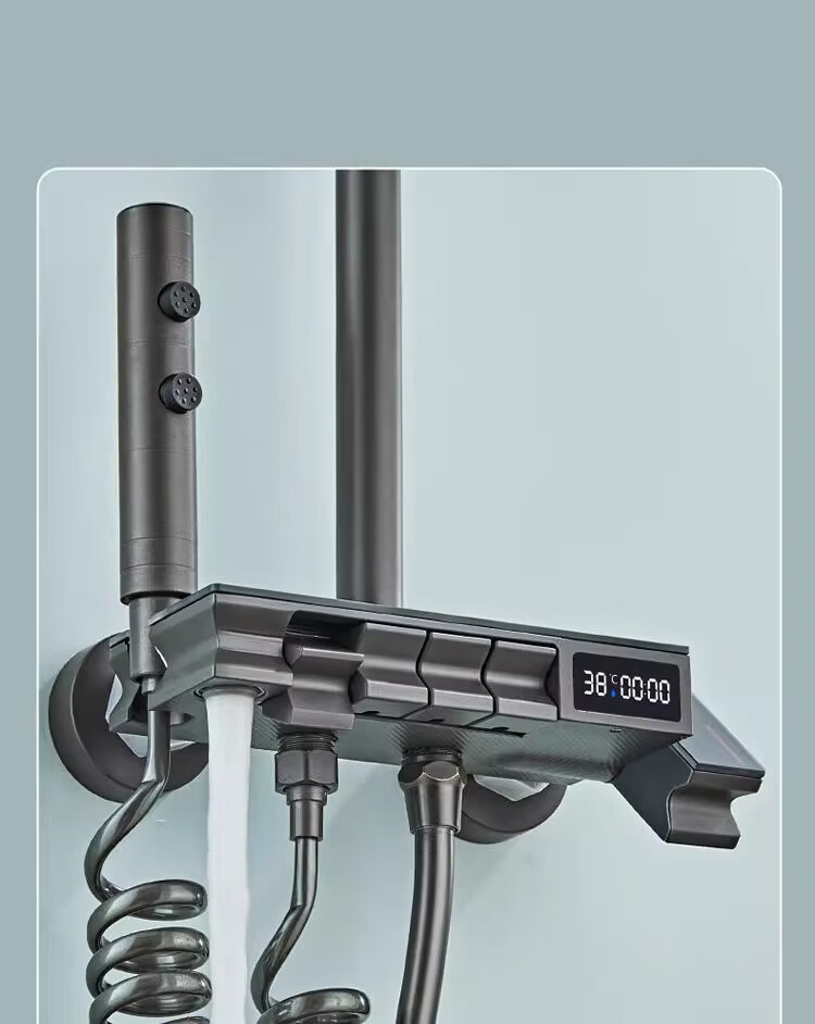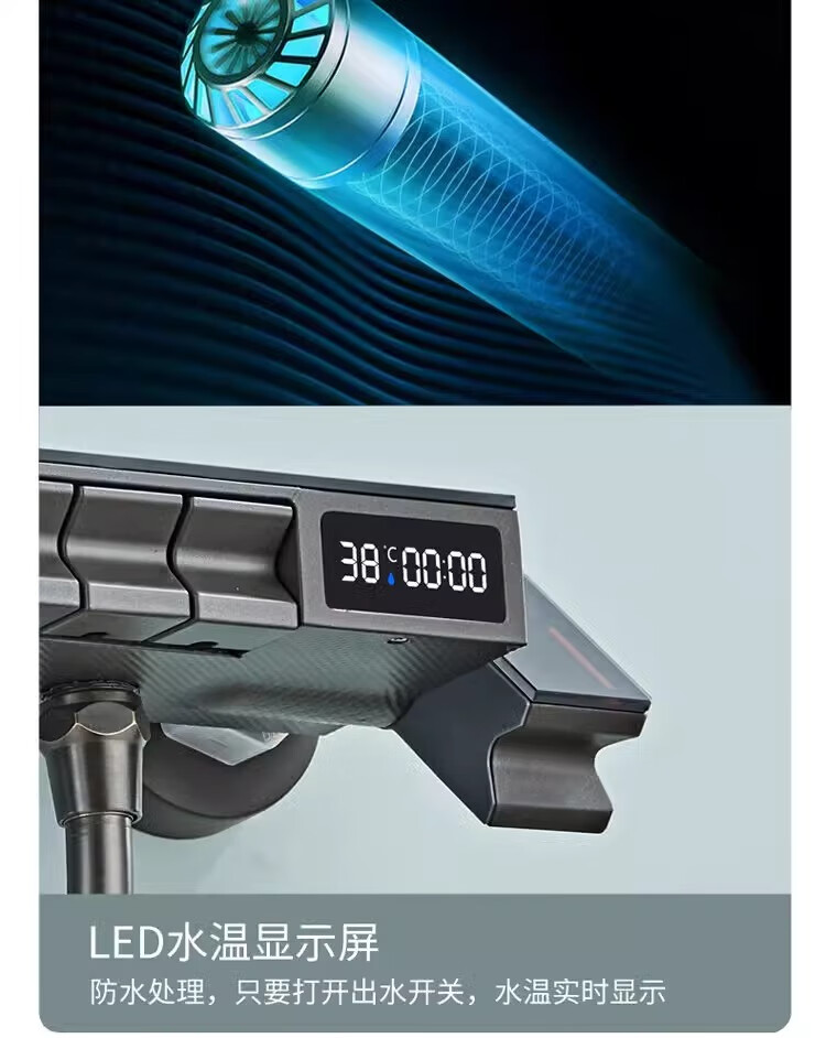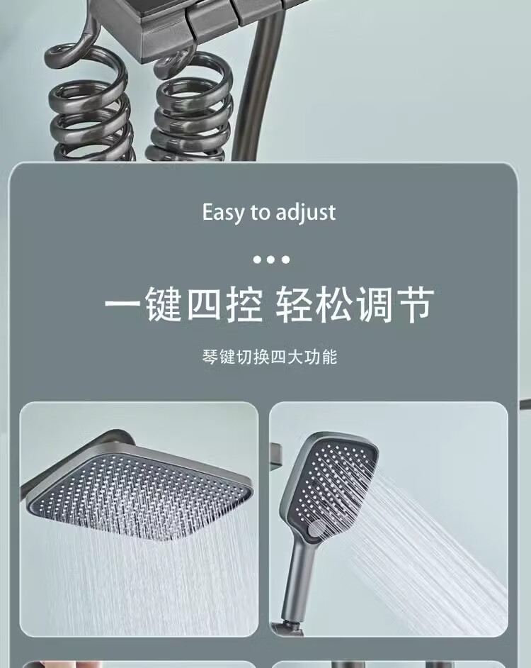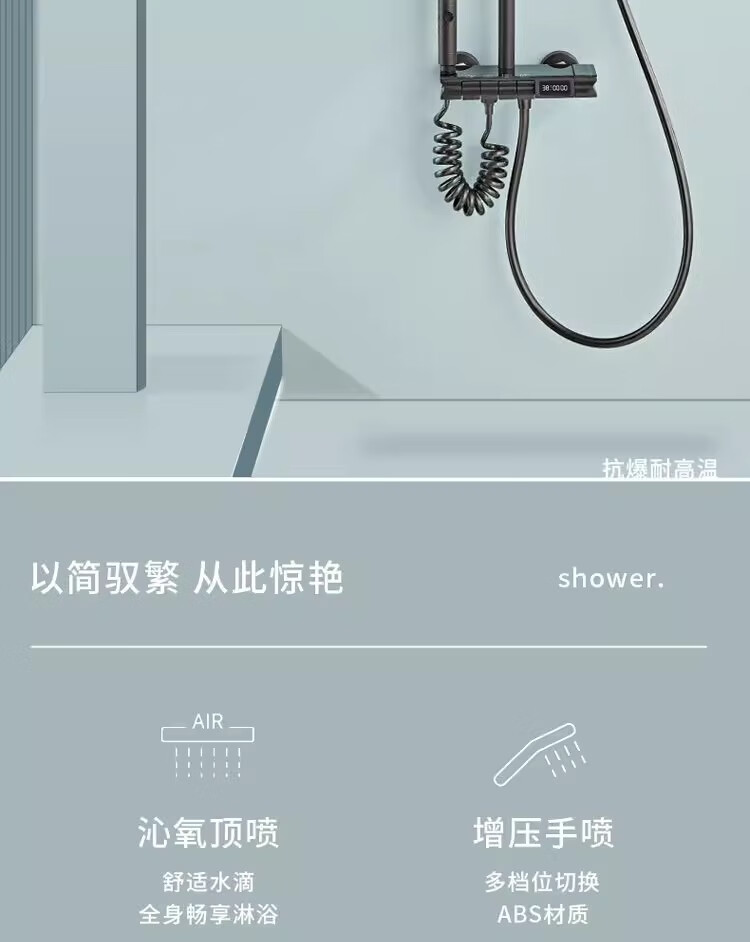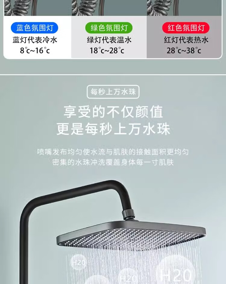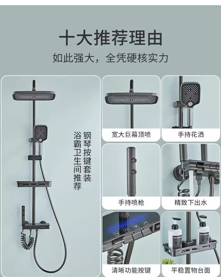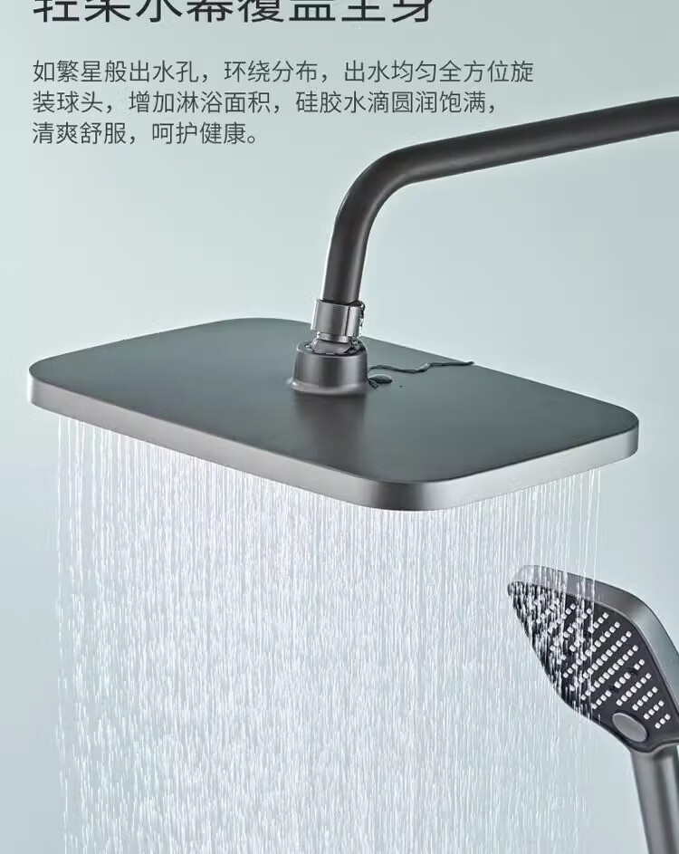 JOMST supercharged shower head set household all-copper constant temperature with ambient light square bathroom lifting bathtub gun gray three-speed universal model