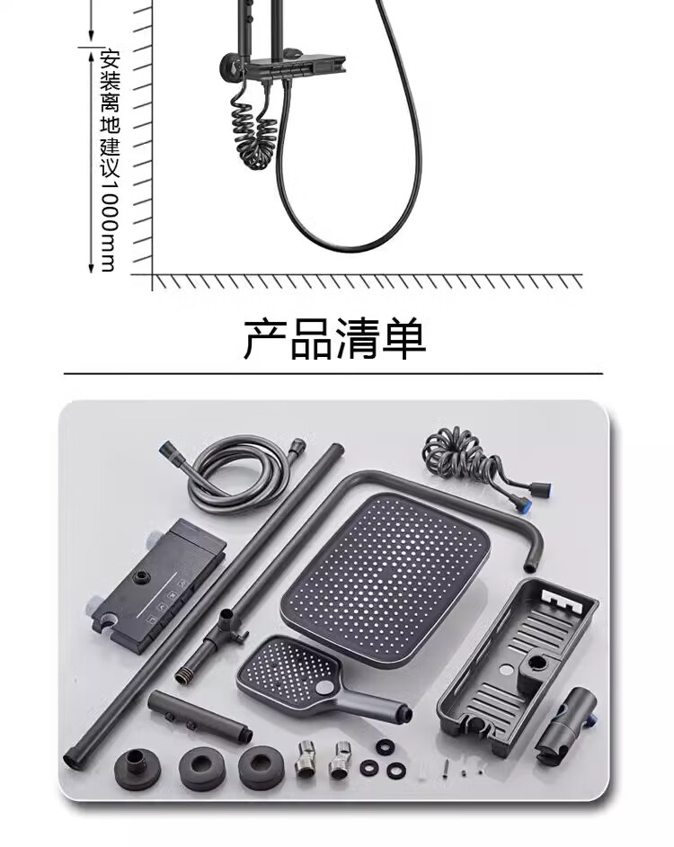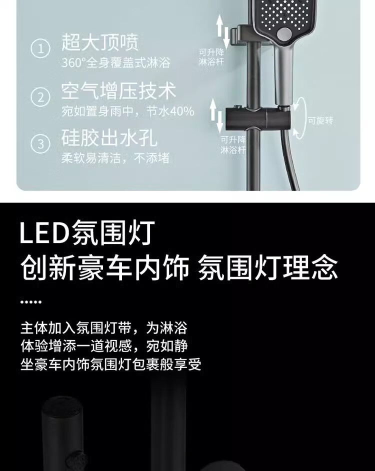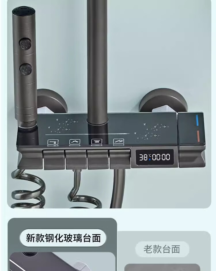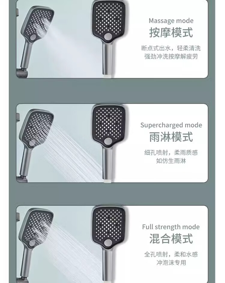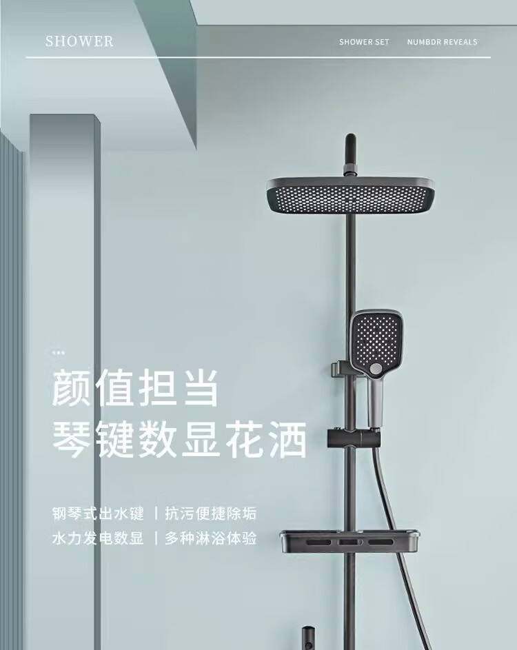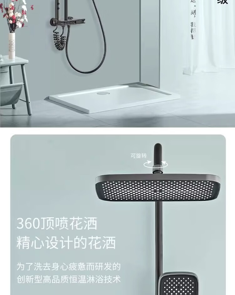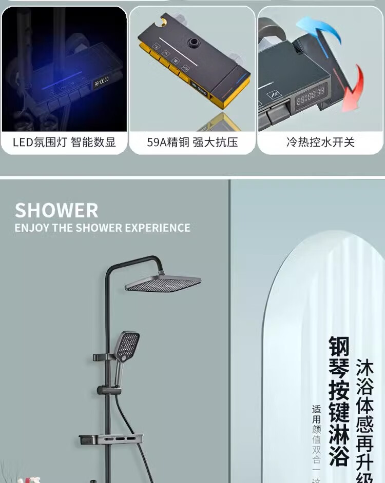 JOMST supercharged shower head set household all-copper constant temperature with ambient light square bathroom lifting bathtub gun gray three-speed universal model