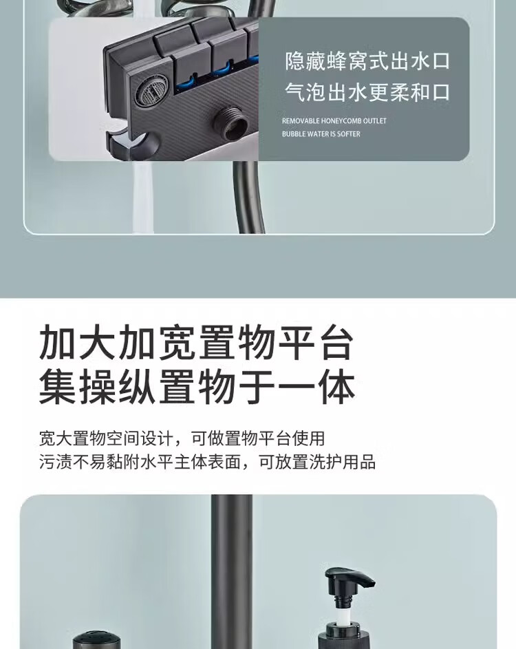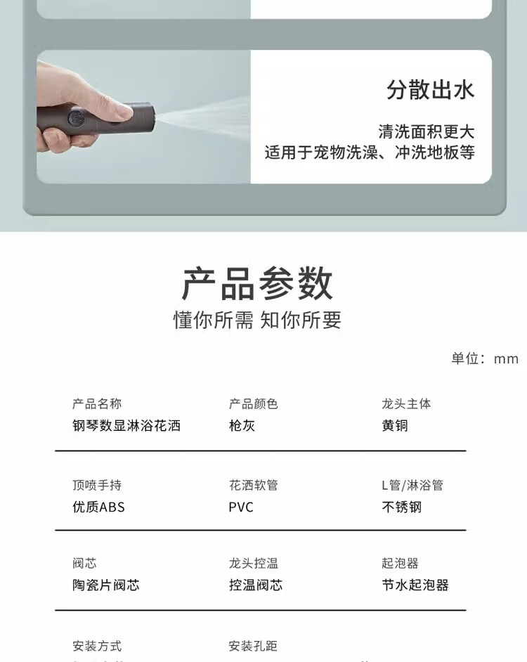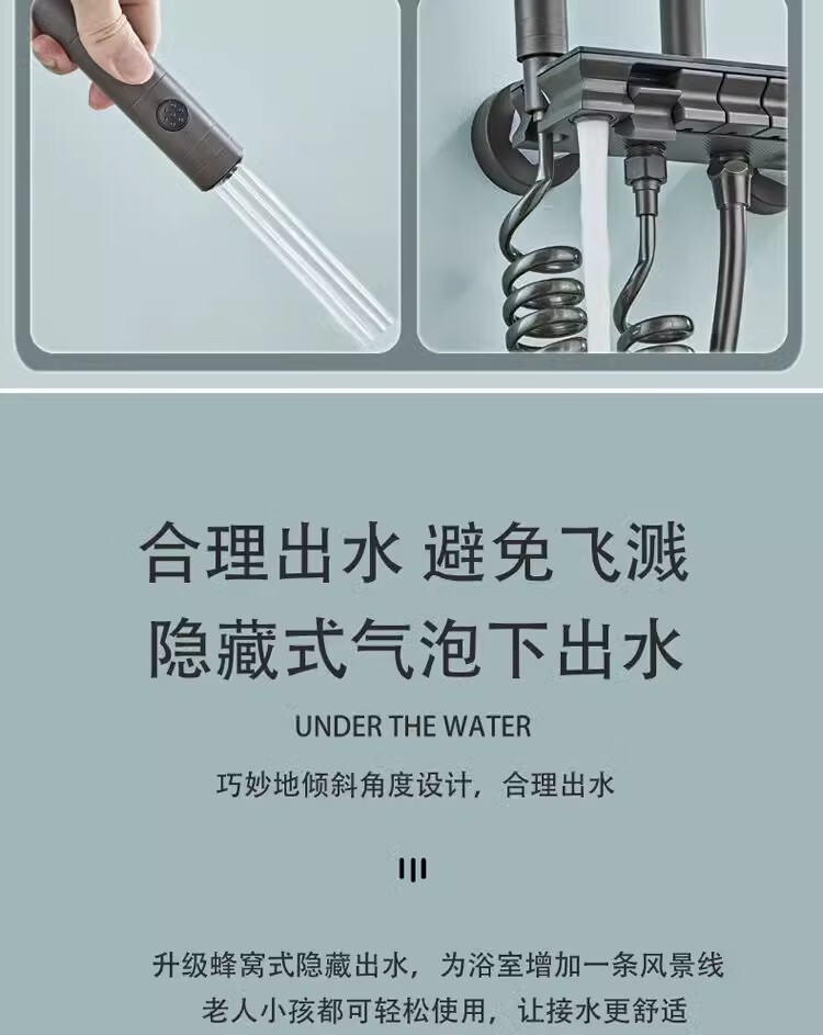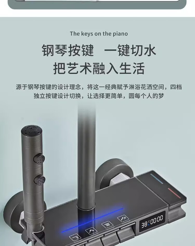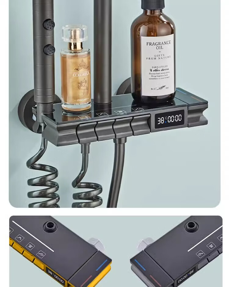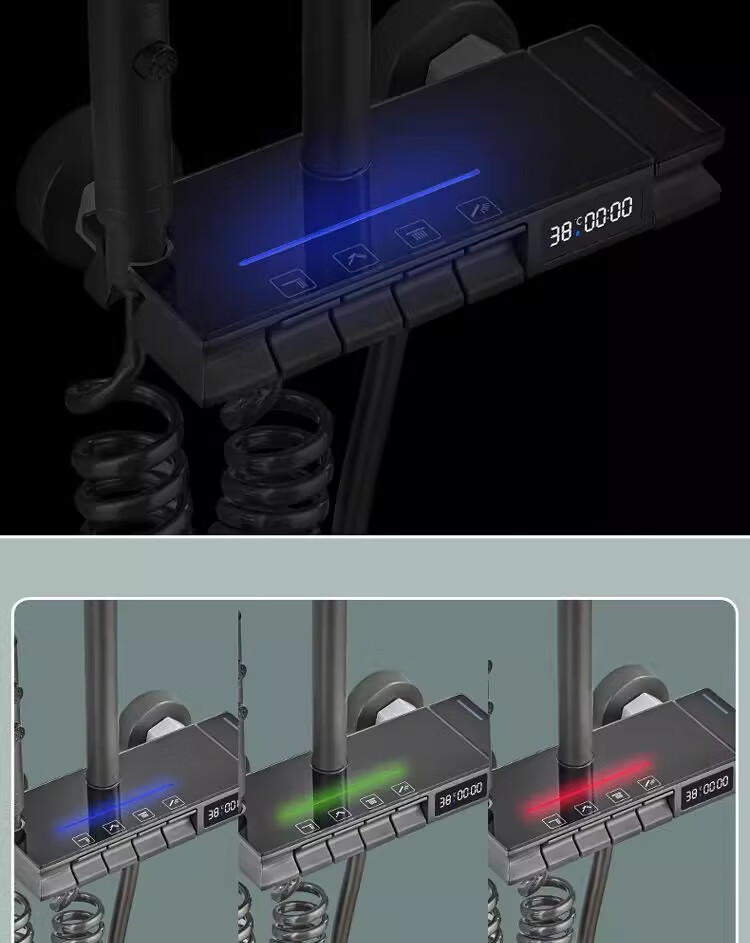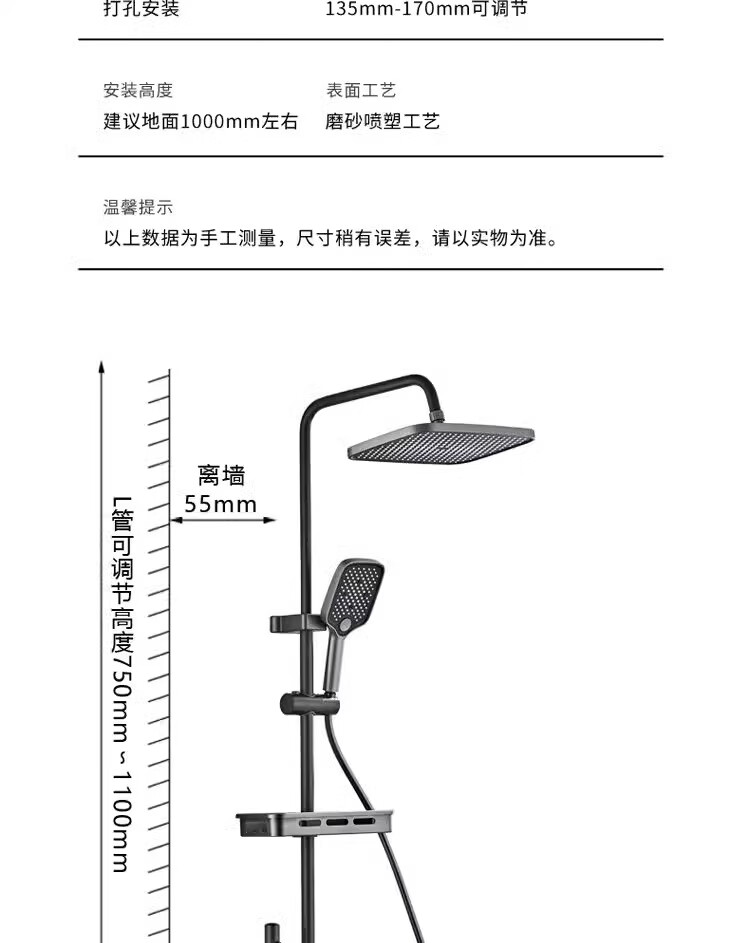 JOMST supercharged shower head set household all-copper constant temperature with ambient light square bathroom lifting bathtub gun gray three-speed universal model