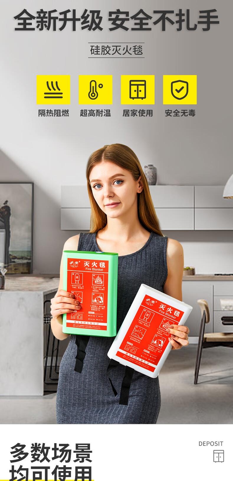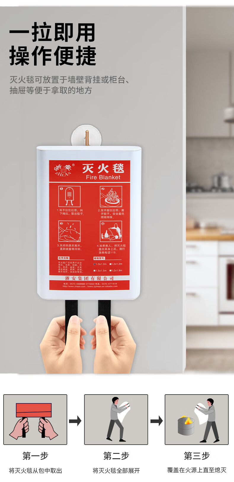 Zhe'an Fire Blanket National Standard Glass Fiber Silicone Fire Blanket Kitchen Fire Escape Silicone Boxed Silicone Fire Blanket Boxed 1m*1m