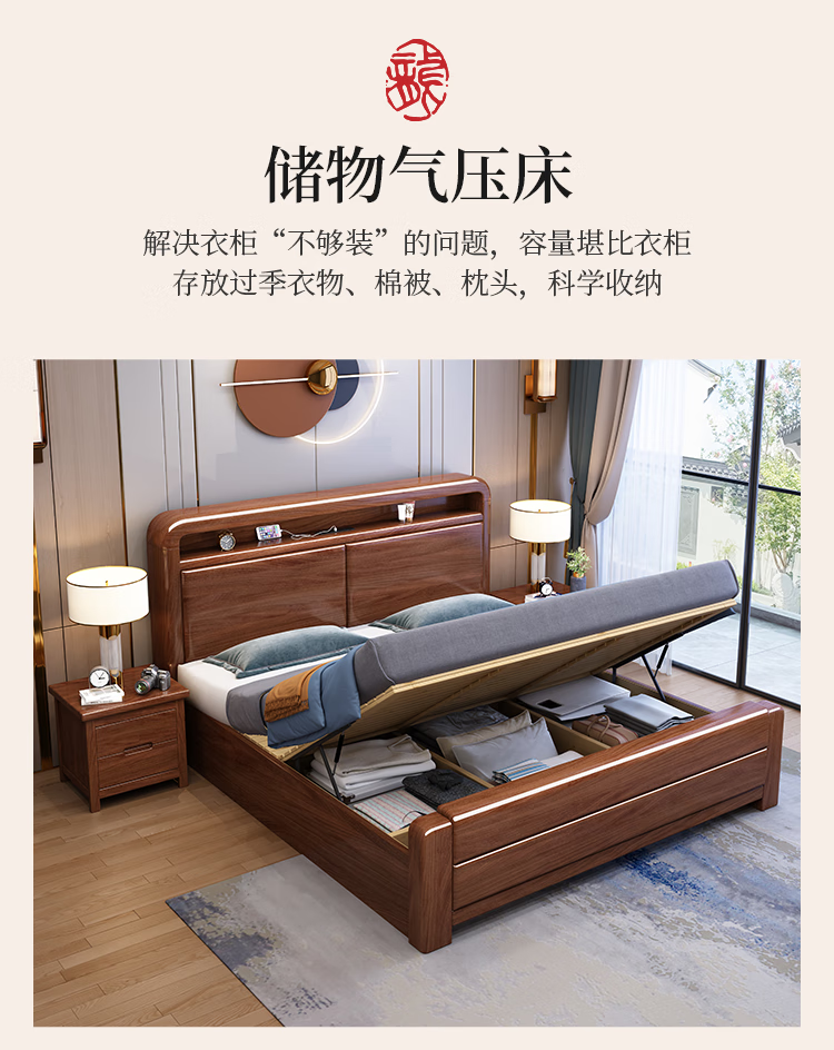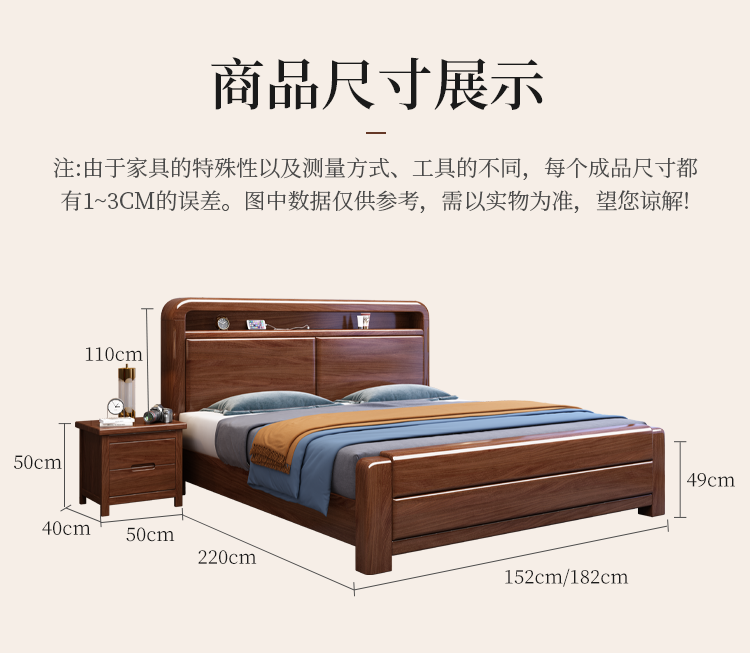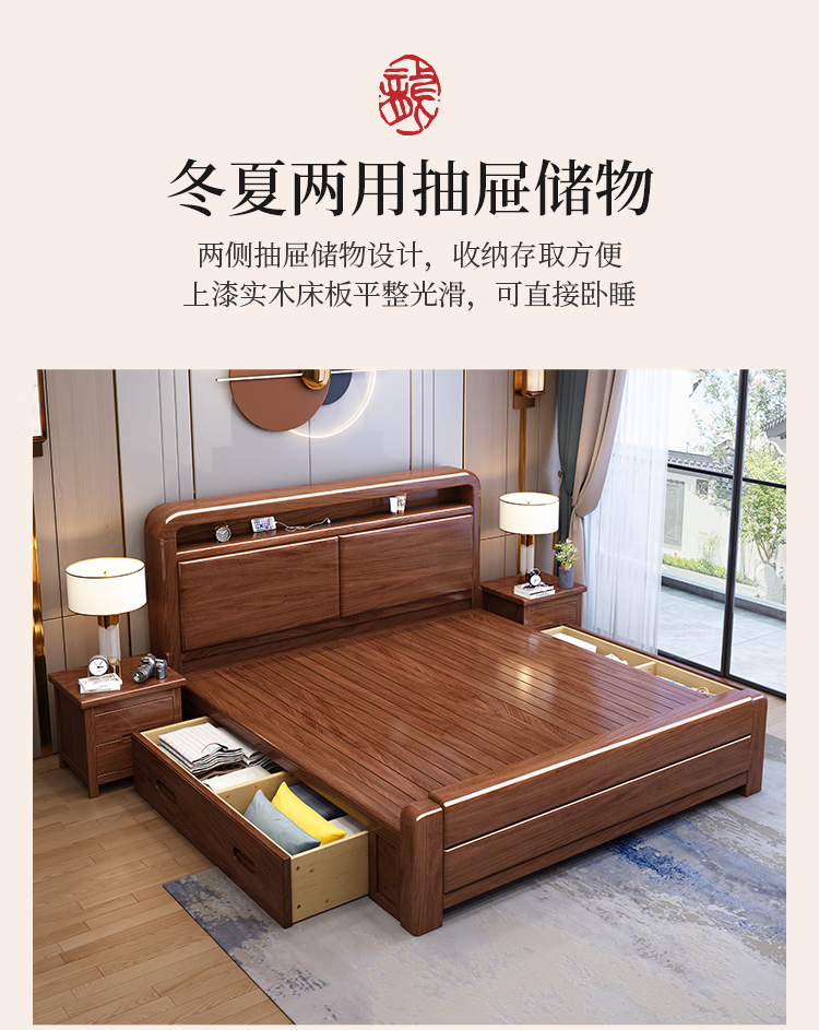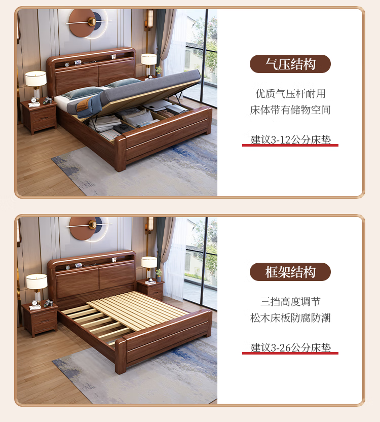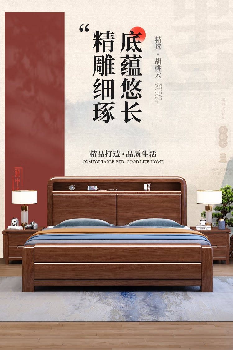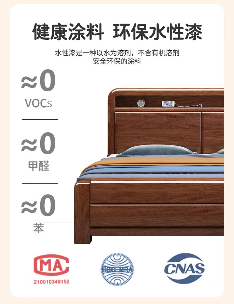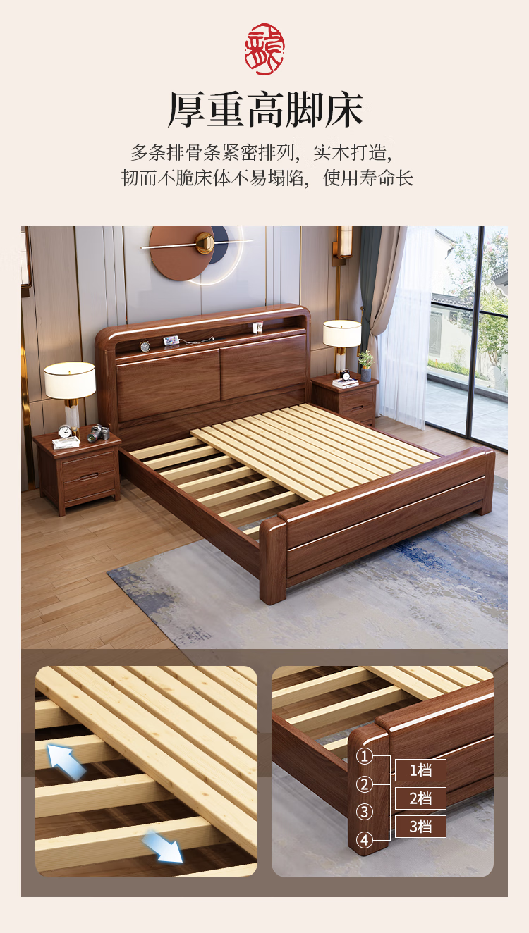 Maiyayue walnut new Chinese style solid wood 1.8m double bed master bedroom wedding bed solid wood bed simple modern 1.5m home bed walnut bed + latex brown cushion 1800*2000mm frame style