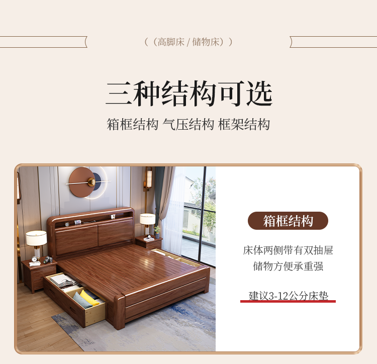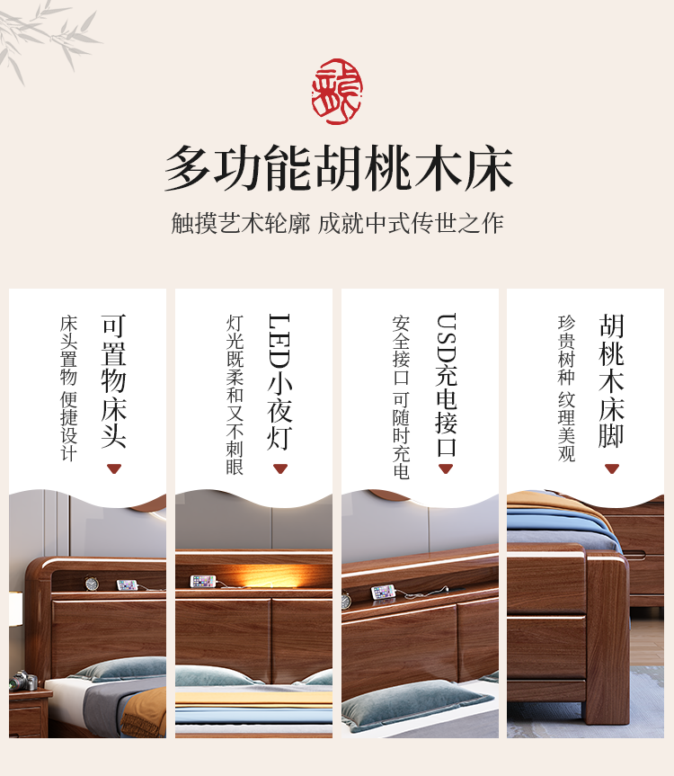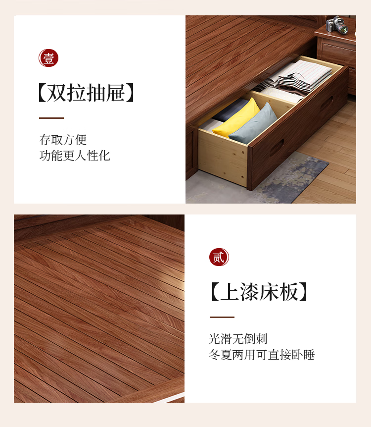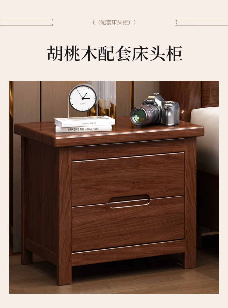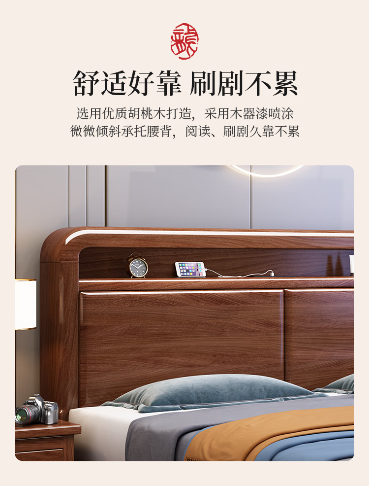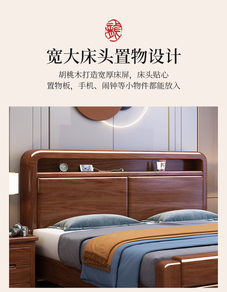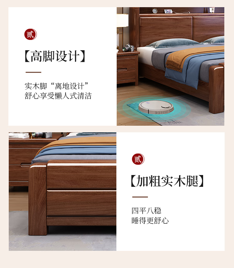 Maiyayue walnut new Chinese style solid wood 1.8m double bed master bedroom wedding bed solid wood bed simple modern 1.5m home bed walnut bed + latex brown cushion 1800*2000mm frame style