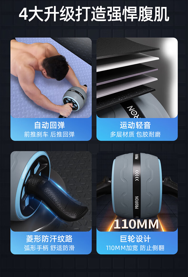 PROIRON Abdominal Wheel Automatic Rebound Anti-Slip Giant Wheel Exercise Abdominal Muscle Wheel Abdomen Roller Chinese Red Automatic Rebound, Silent Anti-Slip