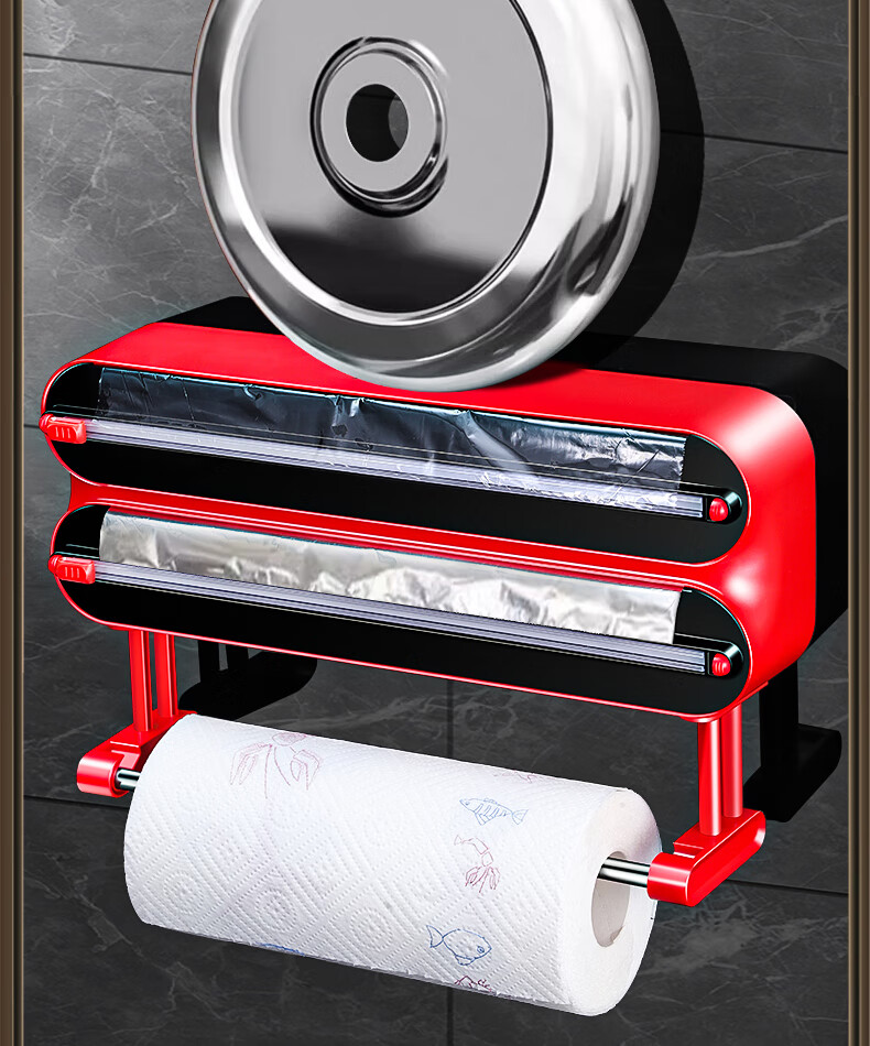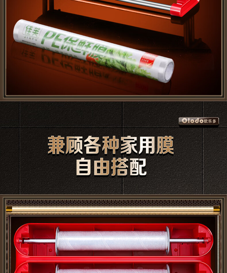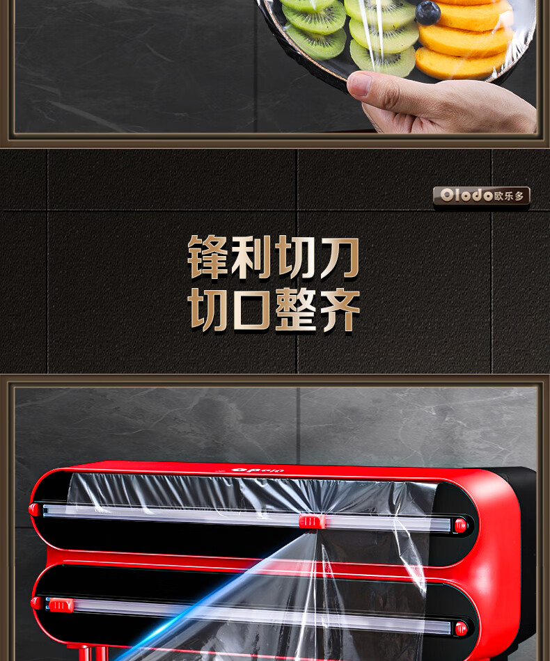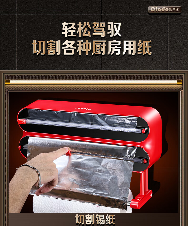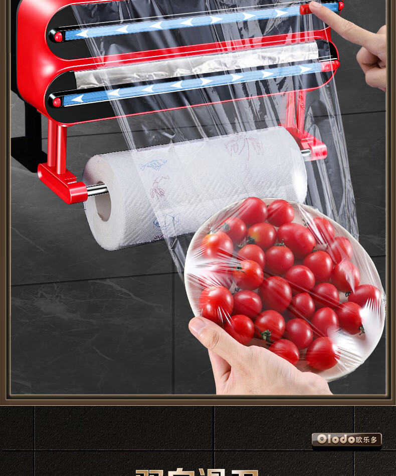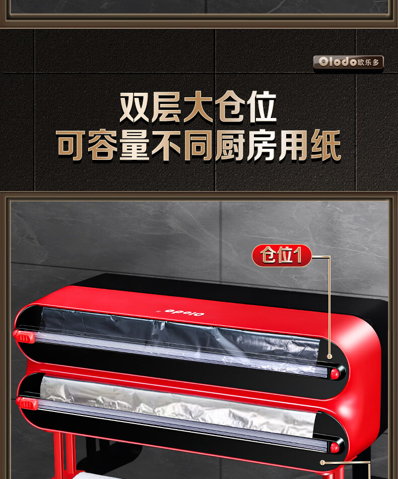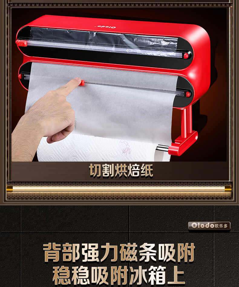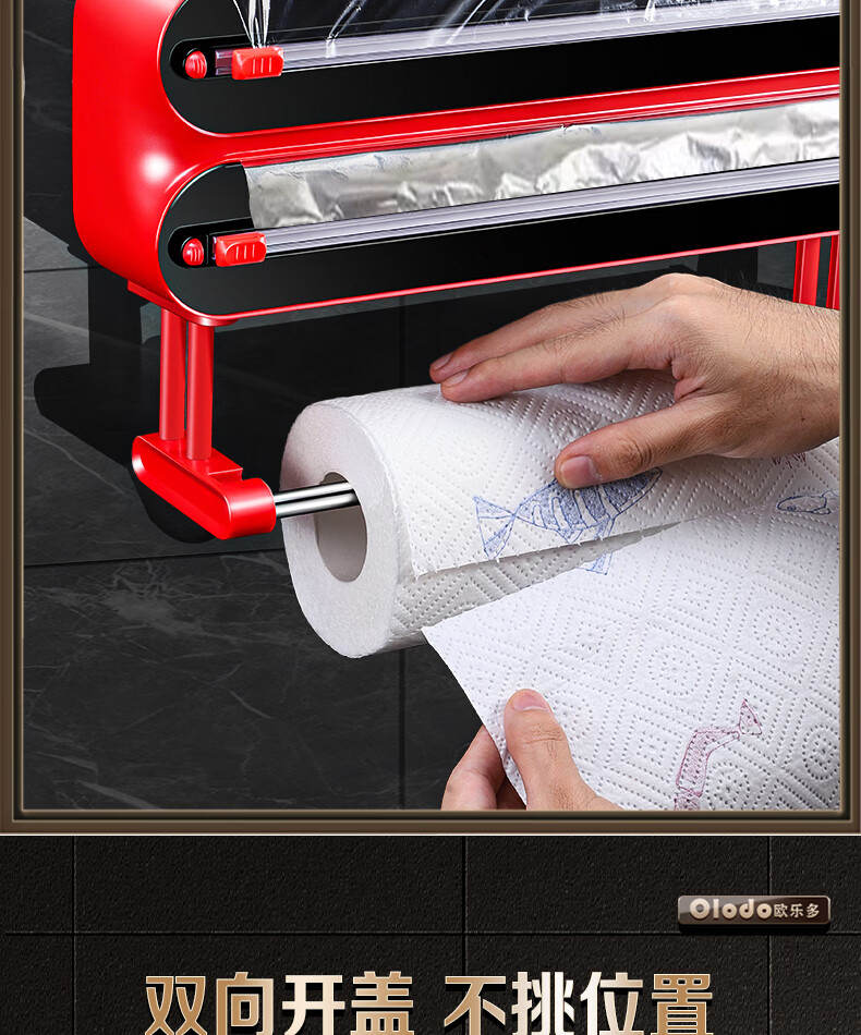 Olodo German cling film cutter household cling film cutting box food-grade kitchen magnetic cling film cutting slide knife three-layer magnetic suction 2 compartments + 1 hanger with film