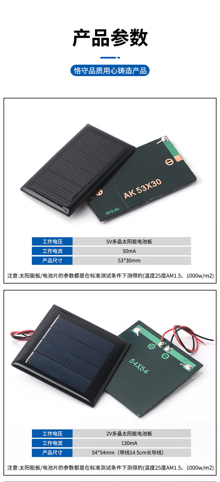 Solar Epoxy Board Polycrystalline Solar Panel 5V 2V Solar DIY Rechargeable Cell Component 54*54mm with Line 2V 130mA Solar Panel Drop