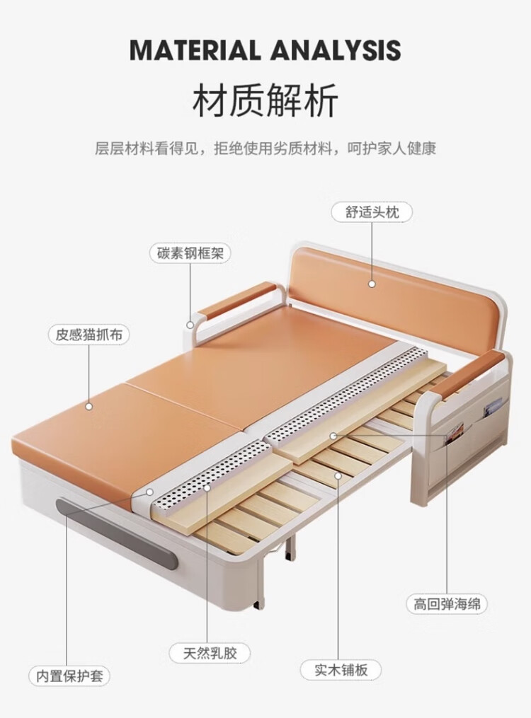 Leiyang folding sofa bed all-in-one dual-purpose 2025 new small apartment fabric retractable bed living room balcony multi-function bed 0.82m storage 7cm sponge