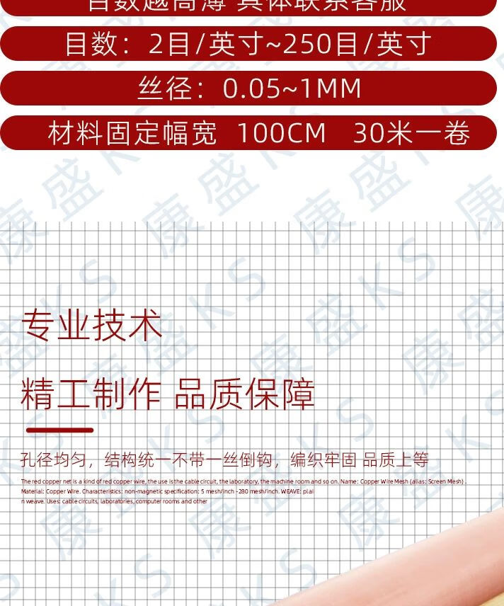 Metal copper mesh copper wire machine room electromagnetic wave signal shielding Faraday cage filter grounding 2-250 mesh national standard thickening---40 mesh--1 meter * 1 meter