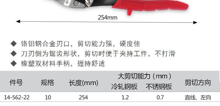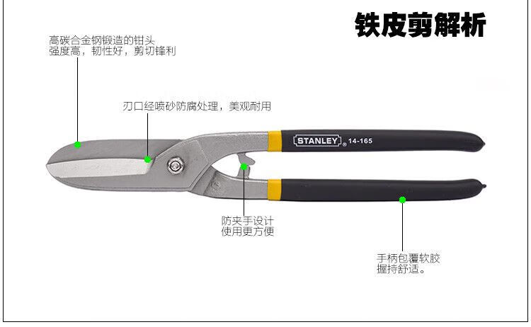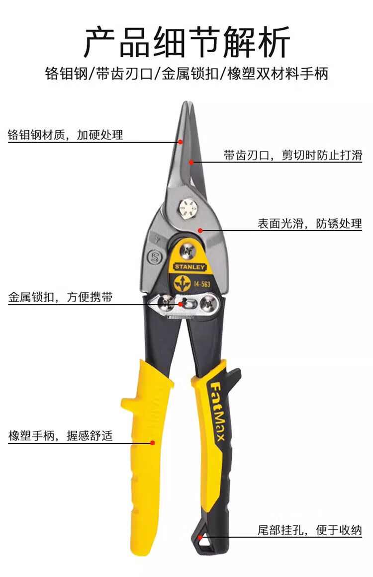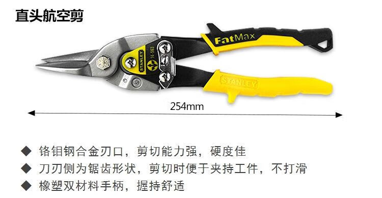 Stanley aviation scissors FatMax iron shears keel scissors metal gauze industrial stainless steel scissors scissors 14-564 left elbow aviation scissors 10 inches