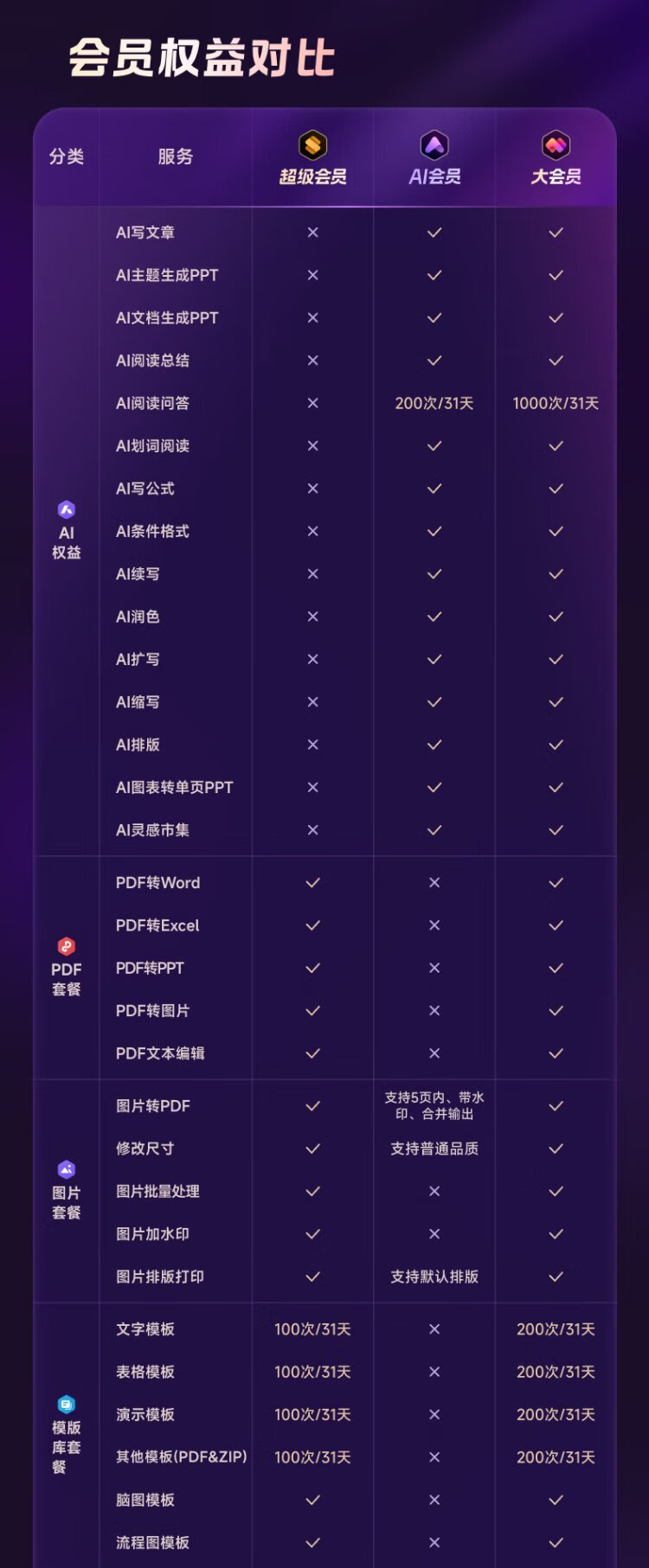 WPS Premium Membership for 4 years, worry-free office work in the New Year, including all super membership functions + WPS AI image processing, PDF editing, conversion, document repair, batch output of long images 1T cloud space, massive template resources, redemption code delivery, WPS Premium Membership for 4 years