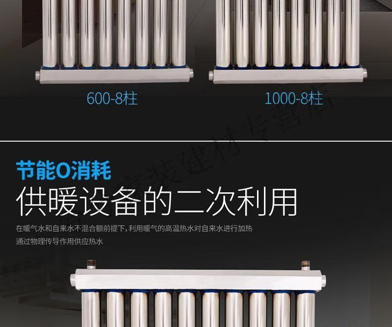 Danstini 304 stainless steel instant heat exchanger over-water heating radiator floor heating plate household hot water exchanger 51-tube 304 stainless steel heat exchanger center distance 60 cm 8 columns