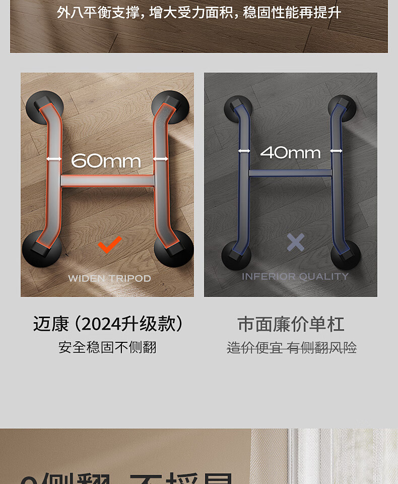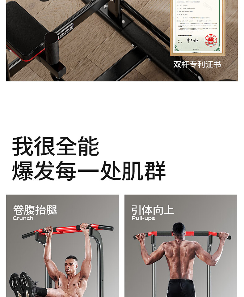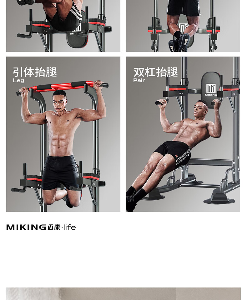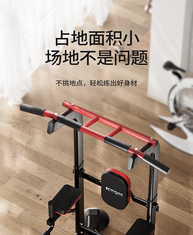 MIKING horizontal bar home indoor pull-up device horizontal bar parallel bar rack single bar floor hanging bar home fitness equipment flagship model yellow and black + booster belt double bar design