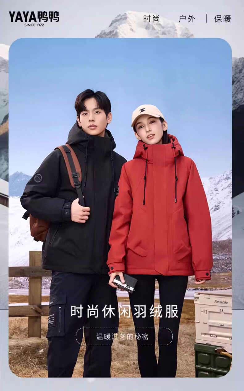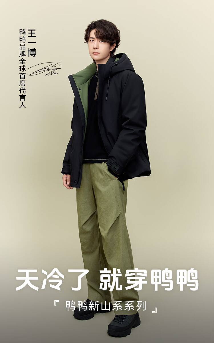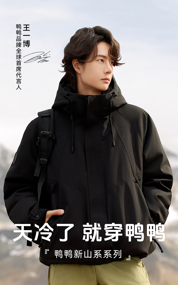 YAYA Wang Yibo same style down jacket women's short 2025 winter new outdoor hooded men's and women's warm jacket YX black L (175)