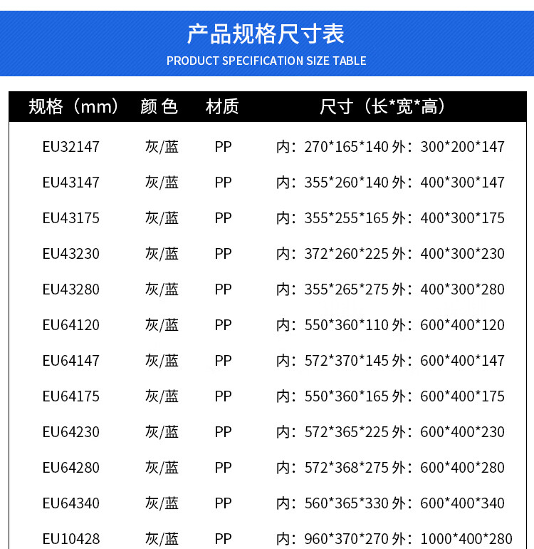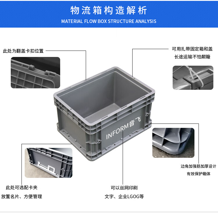 INFORM turnover box European standard EU box storage box thickened plastic auto parts logistics box 400*300*230mm default gray (blue please note)