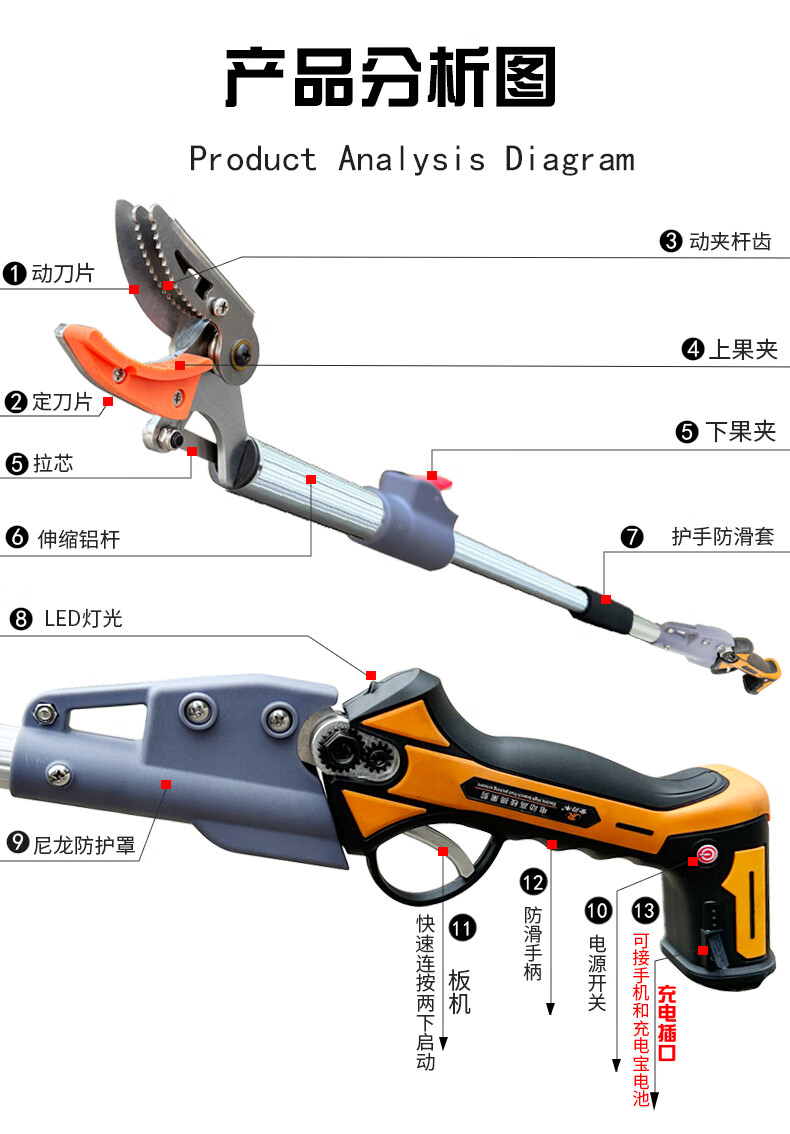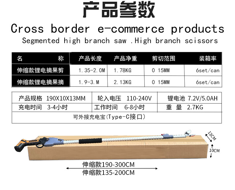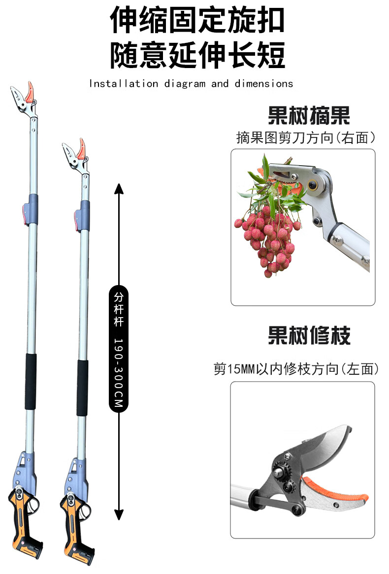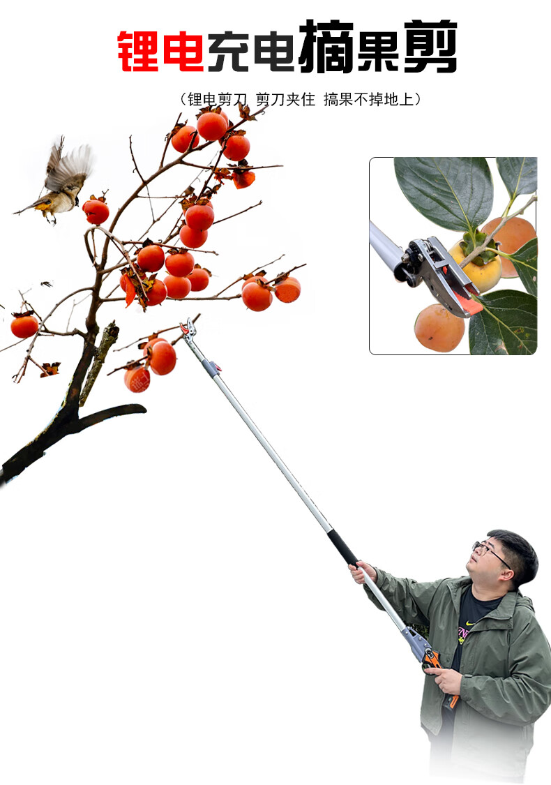 Jiehong's fruit-picking artifact, telescopic high-branch shears, high-altitude shears for gardens, special for picking lychees, longans, toon, fruit-picking scissors, lithium-ion fruit-picking pruning shears 130-2 meters