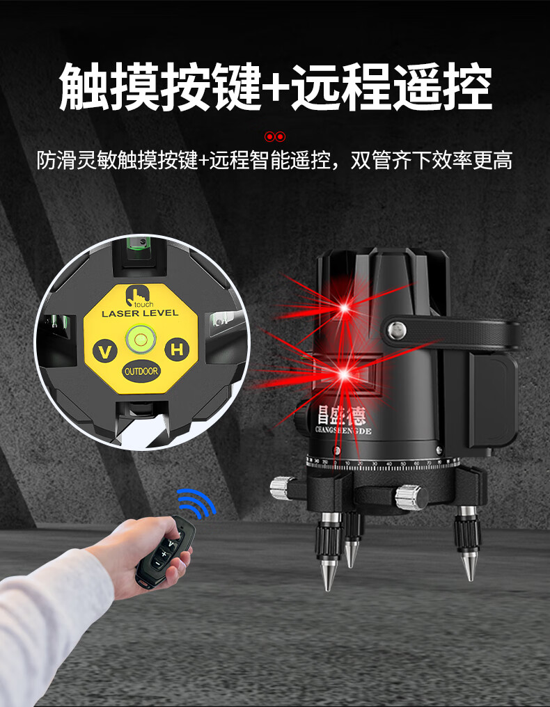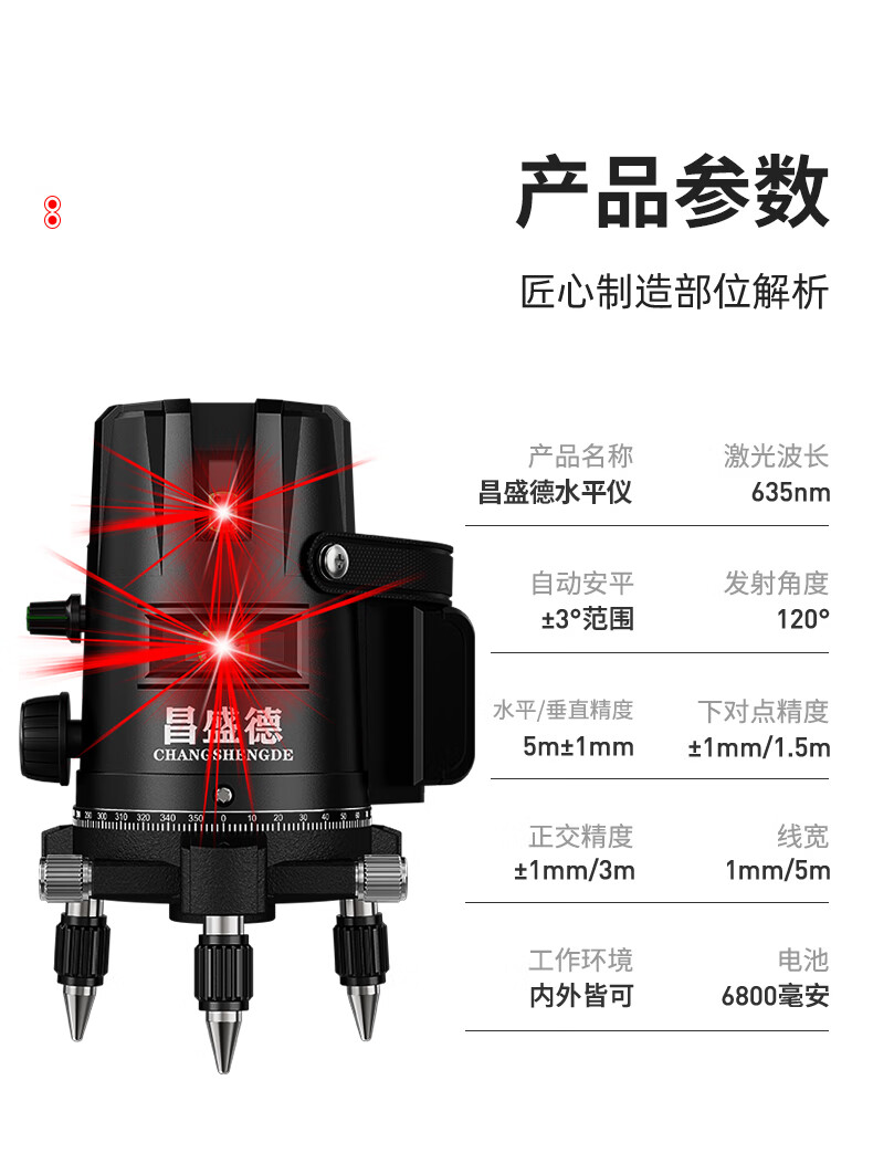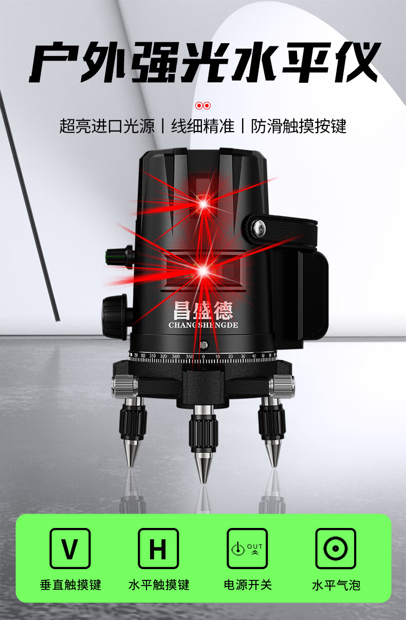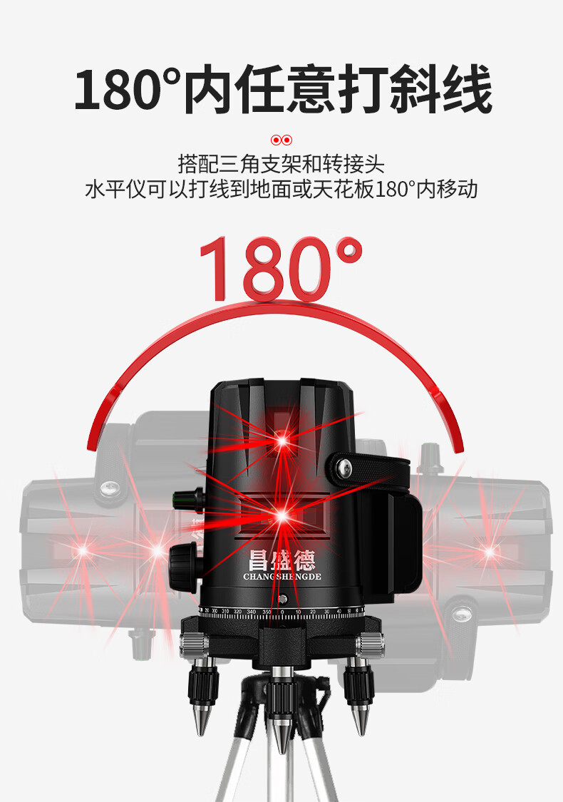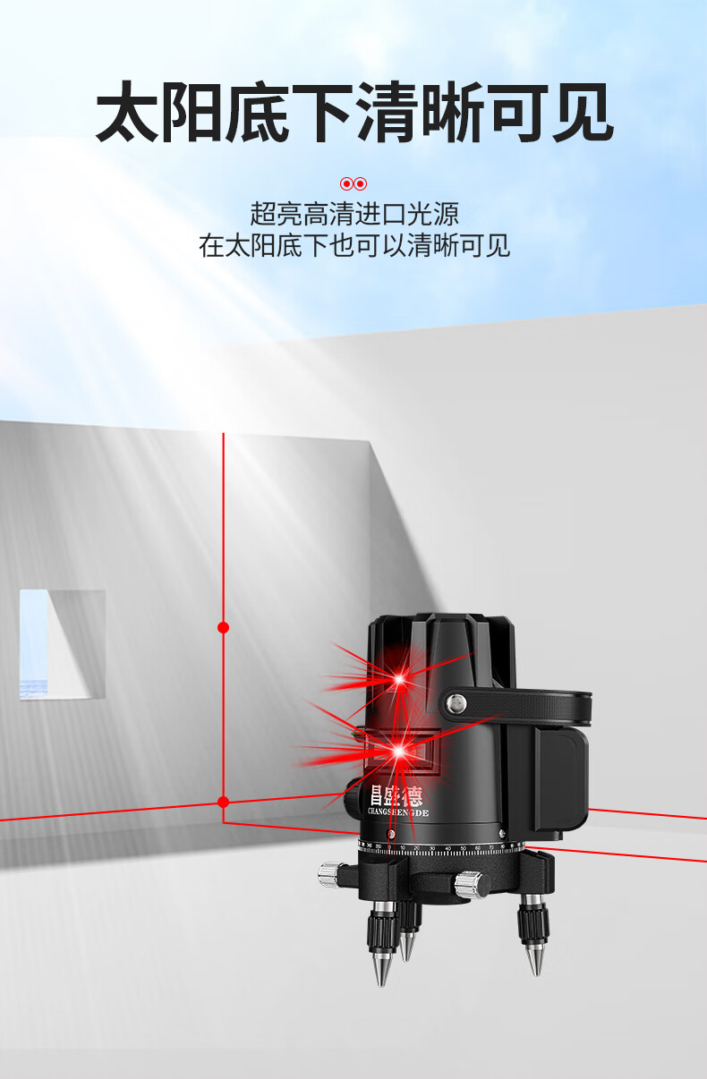 Changshengde Red Light Level Laser 2 Lines 3 Lines 5 Lines Infrared Outdoor Strong Light Super Bright High Precision Automatic Line Casting Outdoor Imported Red Light 2 Lines + Fall Resistant Tool Kit