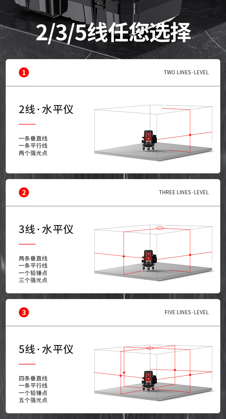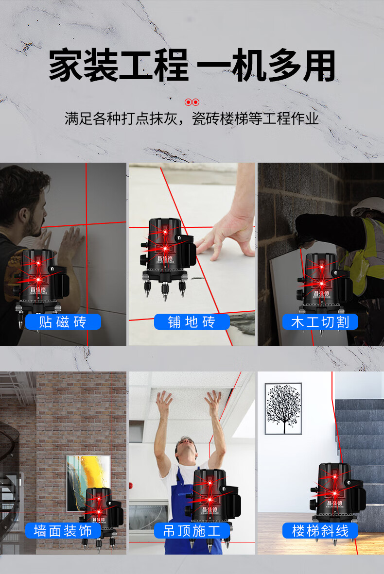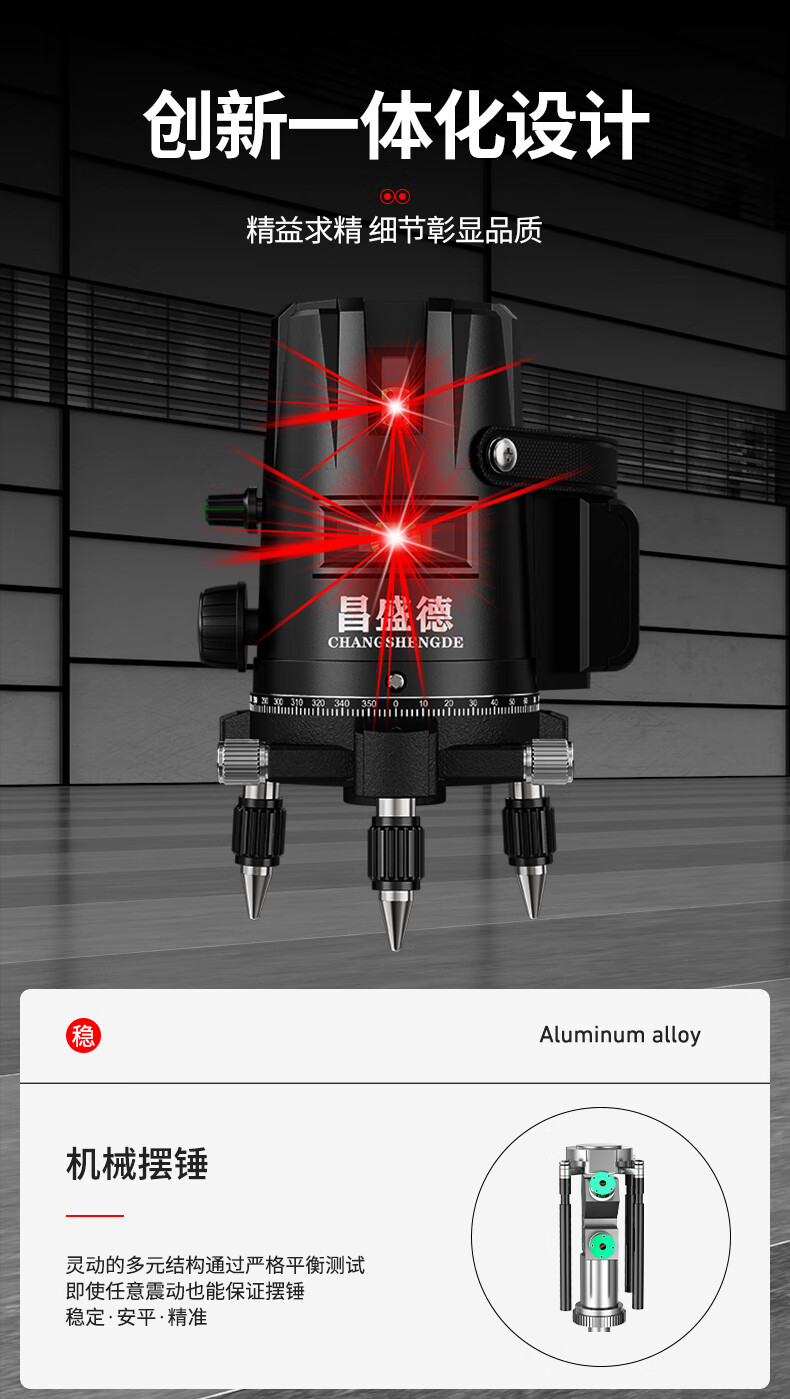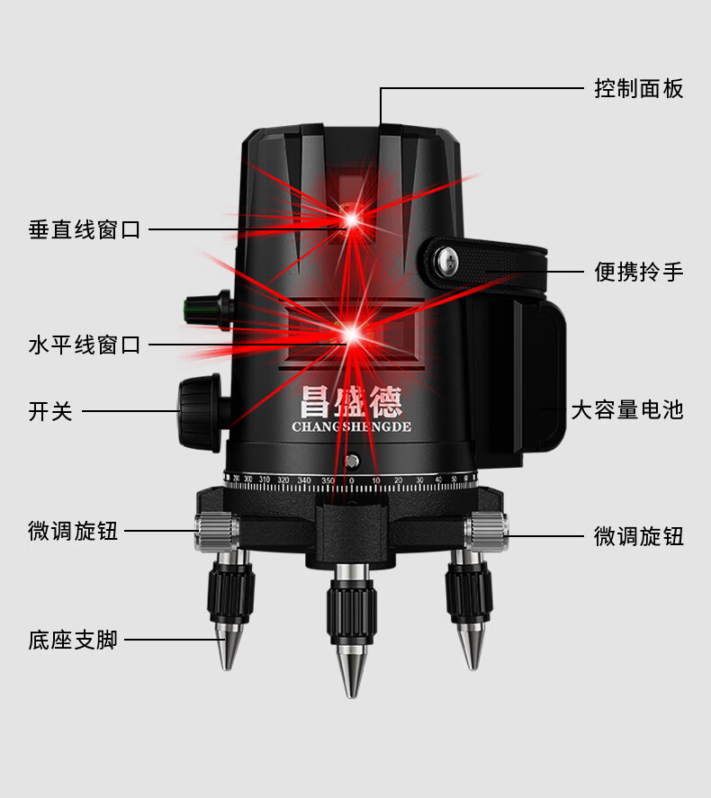 Changshengde Red Light Level Laser 2 Lines 3 Lines 5 Lines Infrared Outdoor Strong Light Super Bright High Precision Automatic Line Casting Outdoor Imported Red Light 2 Lines + Fall Resistant Tool Kit