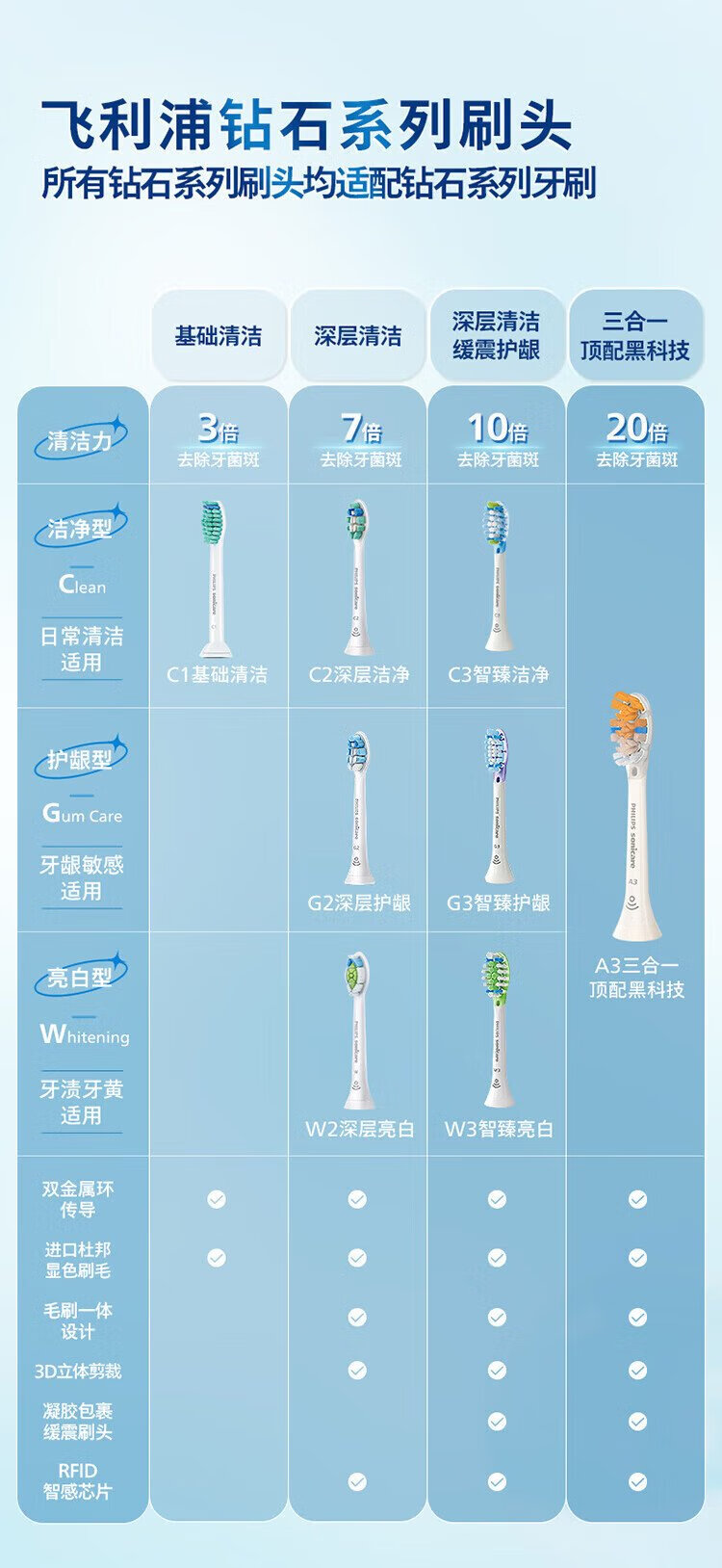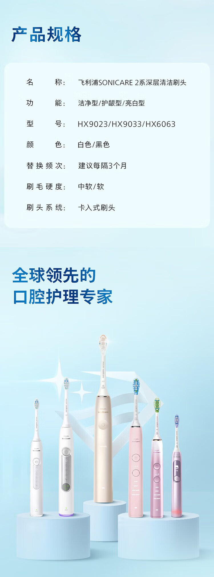 Philips (PHILIPS) electric toothbrush head is suitable for Diamond 3 series/HX51 series/HX6730/5181/6511/3216/3226, etc. 3 pieces C2 cleaning type HX9023/67