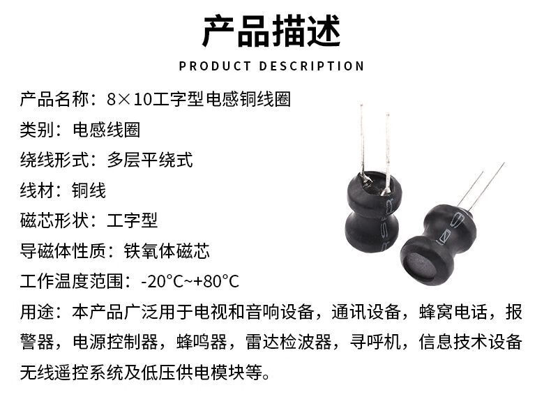 I-shaped 8*10 power inductor coil 1UH/2.2/3.3/4.7/6.8/100/220/470/10MH 33UH 8*10 inductor I-shaped (5 pieces) For large quantities, please consult customer service for quotation