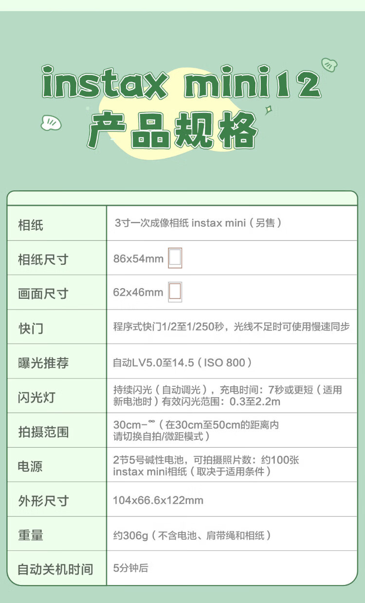 Fujifilm (FUJIFILM) instax instant mini12 instant imaging camera mini11 upgraded version minise/41 three-inch photo paper New Year's gift Annual meeting prize Valentine's Day gift box Mini12 Iris Purple New Year's special official standard package does not include photo paper