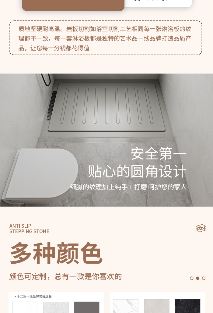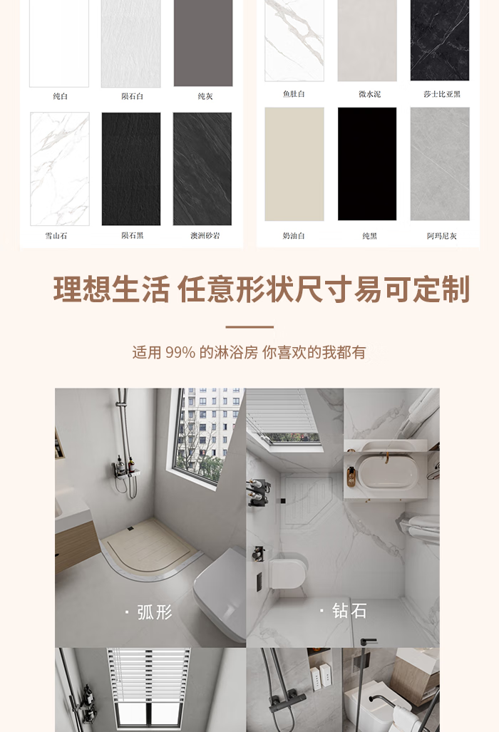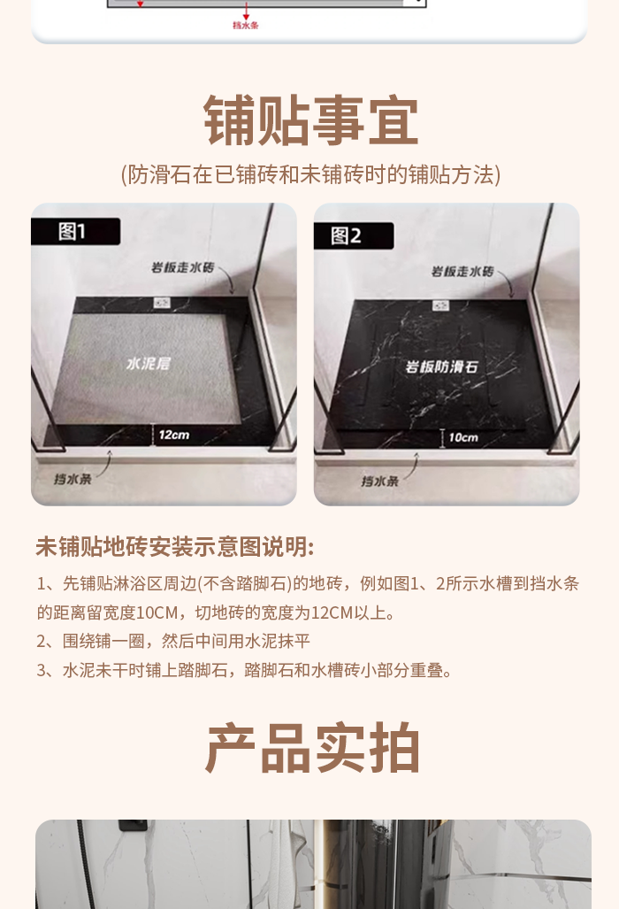 Medium quality made shower room sunken bathroom slate custom shower board bathroom shower feet anti-slip stone base pedal pedal + water plate + water retaining strip 15mm thick full set customization/square meter unit price
